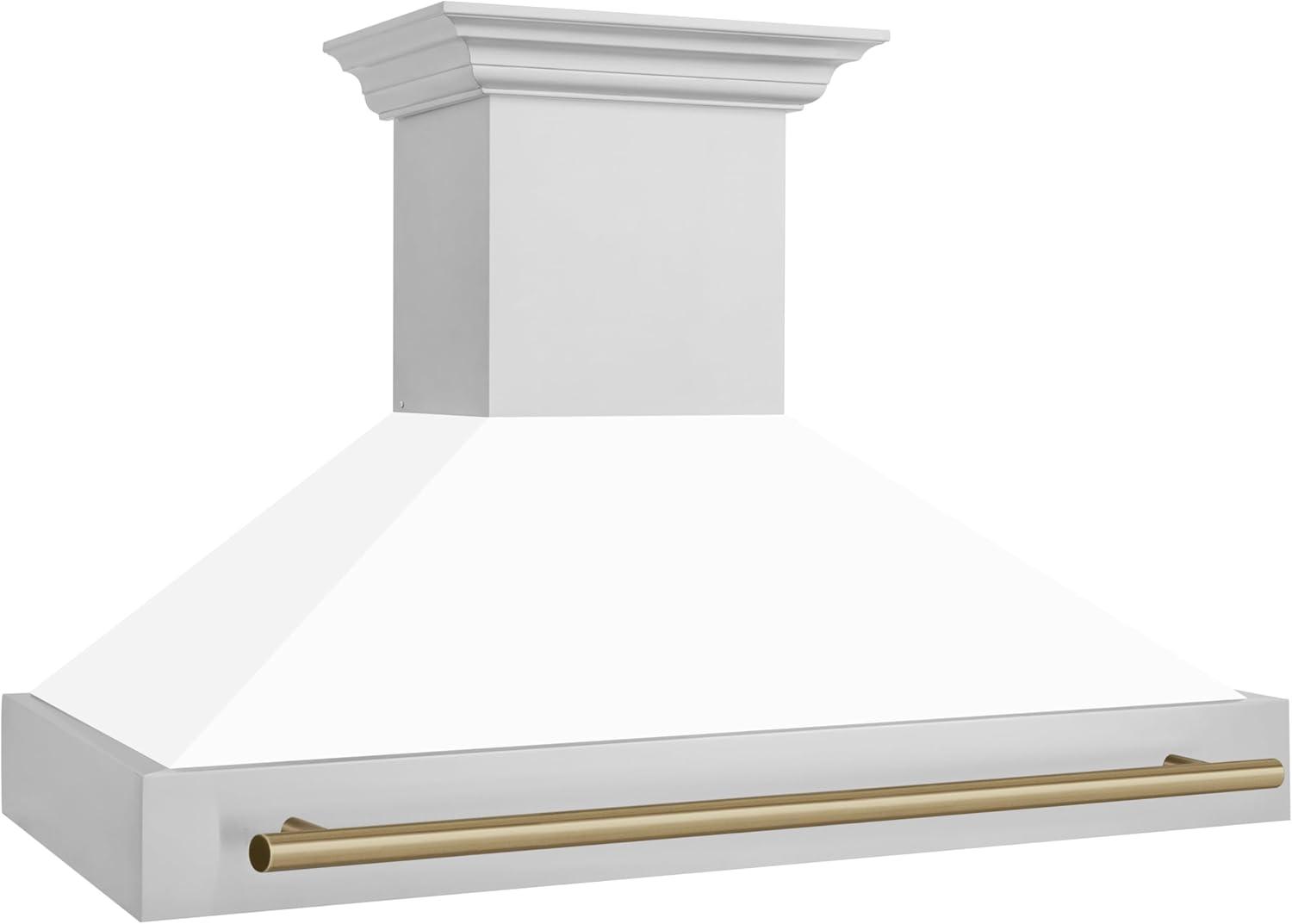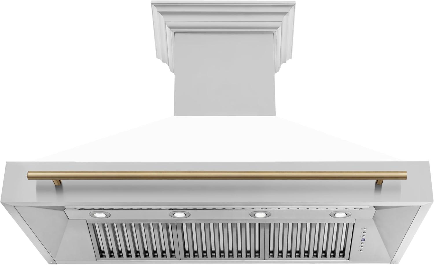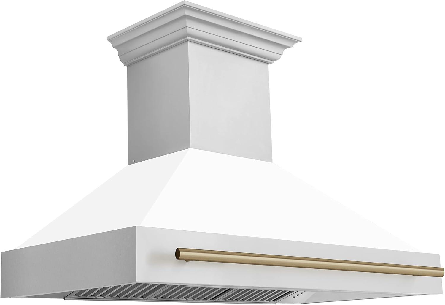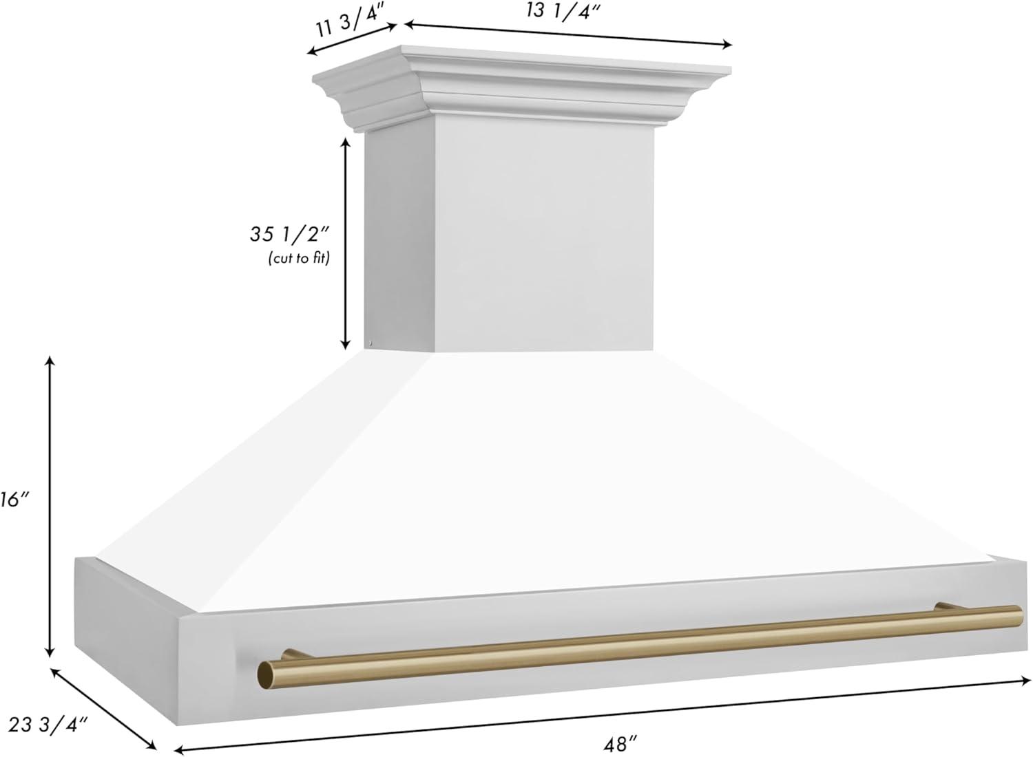 48″ ZLINE Autograph Edition Stainless Steel Range Hood with White Matte Shell and Champagne Bronze Handle (8654STZ-WM48-CB)