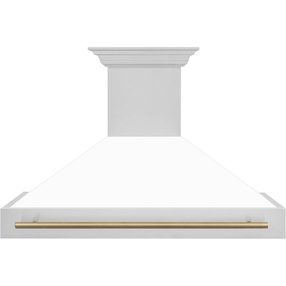 image48quot ZLINE Autograph Edition Stainless Steel Range Hood with White Matte Shell and Champagne Bronze Handle 8654STZWM48CB