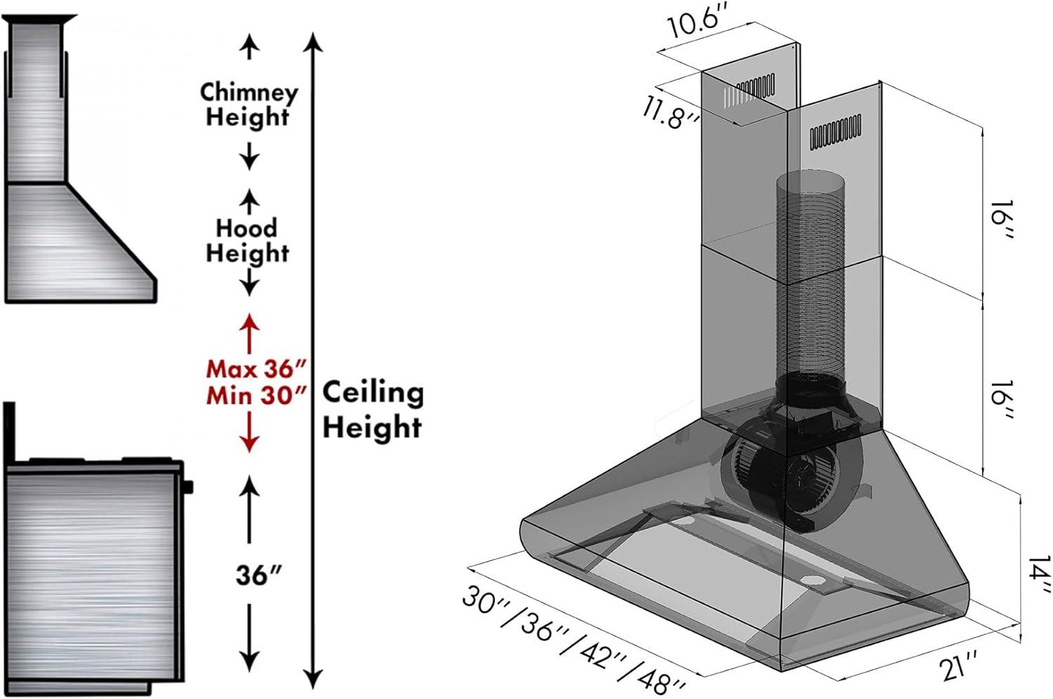 Z Line 597-36 Z Line 900 CFM Wall Mount Range Hood, 36″, Stainless Steel(42 in.)