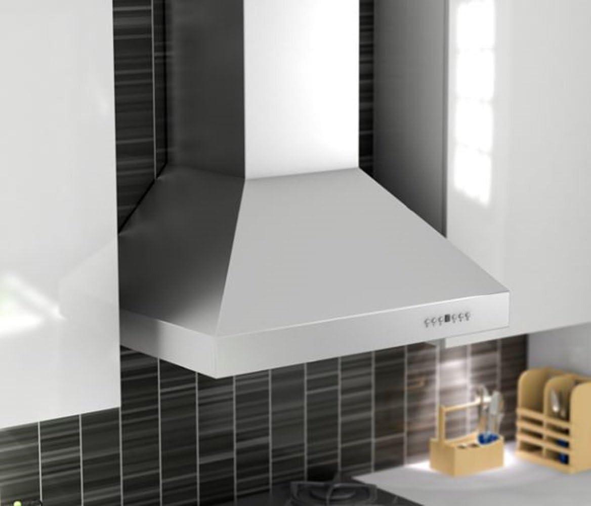 ZLINE 36 in. Wall Mounted Range Hood in Stainless Steel is one of the best-selling of the 30 in. models. Modern design, clean stainless steel finish and factory tested assurance of performance make this hood the perfect addition to your kitchen and reliable for years to come. Complete with 4-speed fan control, dishwasher-safe baffle filters for easy cleanup and an autotimer with delayed shutoff make put this range hood model ahead of its time. Powerful, yet surprisingly quiet 900 CFM venting moves large amounts of air away from your cook-stove area. The installation of this product is one of the easiest in the industry. Includes a free upgrade to LED lights for brighter and more energy efficient lighting. This range hood will surpass your expectations.