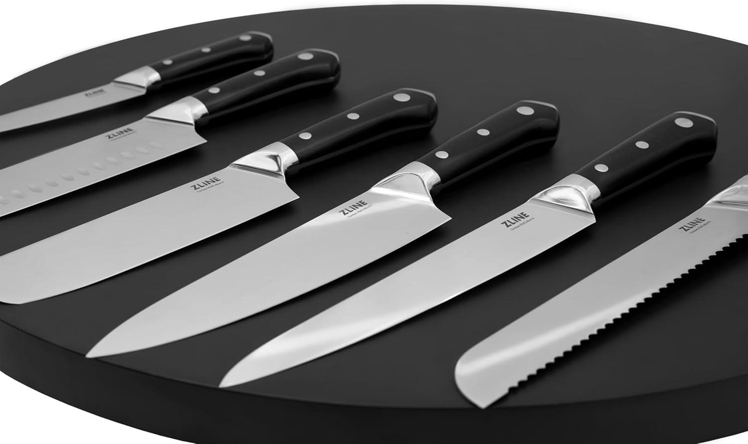 Complete Knife Set – Handle every culinary endeavor with ease with an 8 in. chef knife, 7 in. santoku knife, 9 in. bread knife, 9 in. slicing knife, 7 in. nakiri knife, 5.5 in. utility knife, 3.5 in. paring knife, 8 in. honing rod, and six 5 in. steak knives