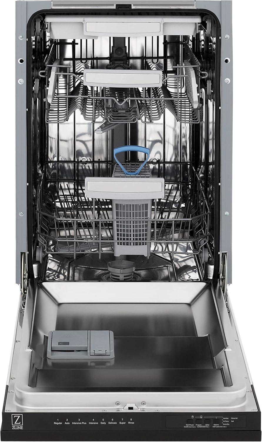 Spacious Interior – Two adjustable racks provide flexibility to load dishes up to 12 inches tall and fit up to 10 place settings, in addition to a removable third utensil rack.