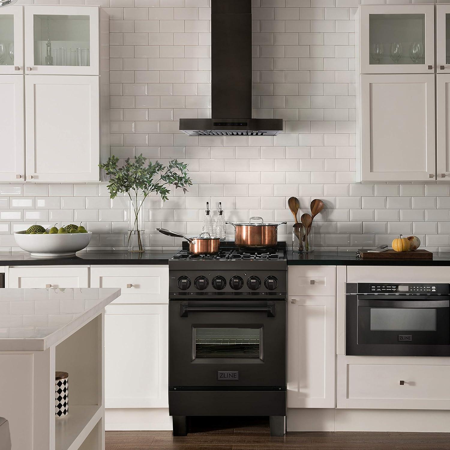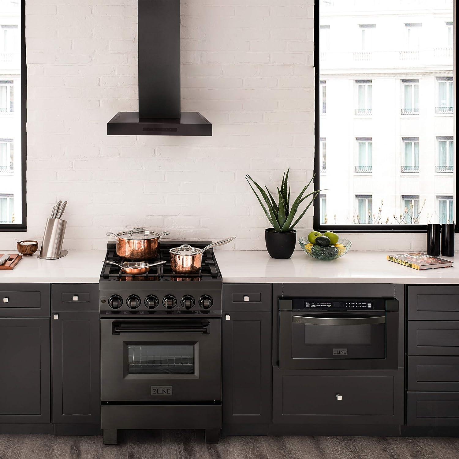 The ZLINE BSKEN-24 is a 24 in. professional wall mount stainless steel range hood with a modern design and built-to-last quality, making it a great addition to any kitchen. This hood's high-performance, 400 CFM 4-speed motor will provide all the power you need to quietly and efficiently ventilate your stove while cooking. Enjoy modern features, including built-in LED lighting for an illuminated culinary experience and dishwasher-safe stainless steel baffle filters for easy clean-up. This wall-mount range hood has a convertible vent, so you can have a luxury range hood whether you need a ducted or ductless option. Enjoy easy installation and an easy recirculating conversion process. Experience Attainable Luxury in the heart of your home, with a ZLINE range hood. ZLINE Kitchen and Bath stands by all products with its manufacturer parts warranty.