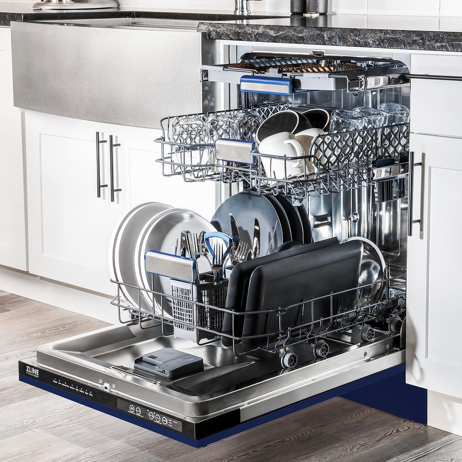 ZLINE 24″ Tallac Series 3rd Rack Tall Tub Dishwasher in Blue Gloss with Stainless Steel Tub, 51dBa (DWV-BG-24)