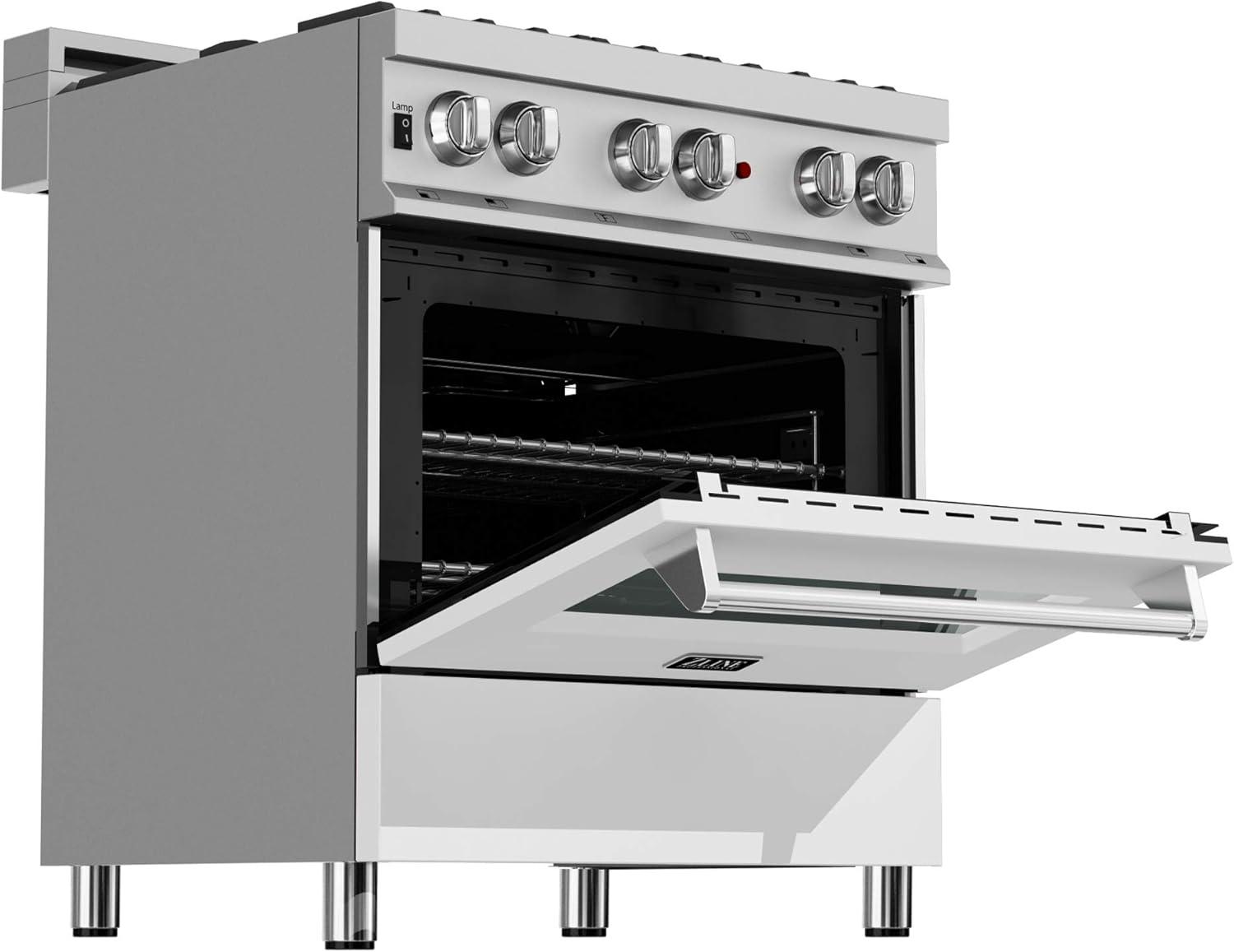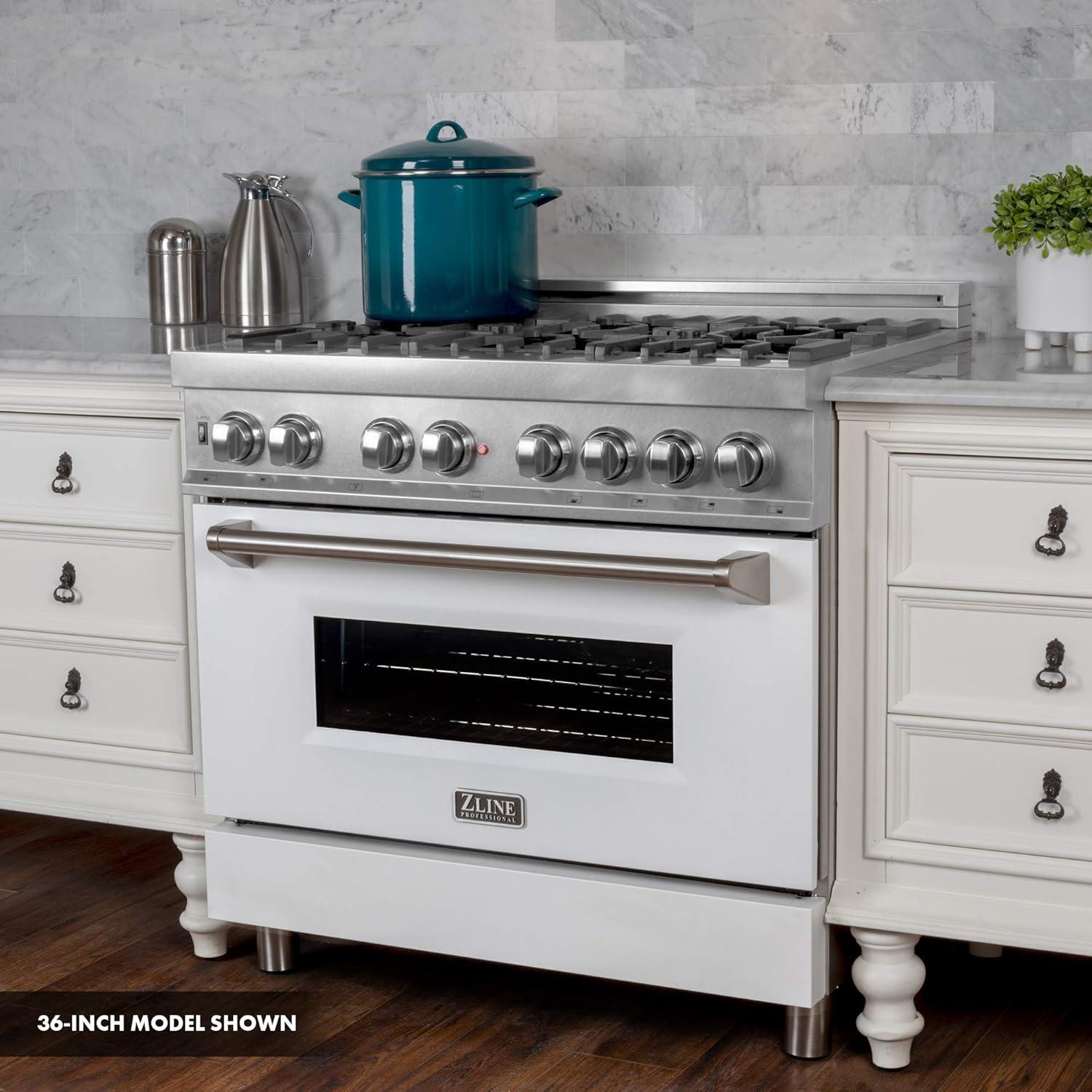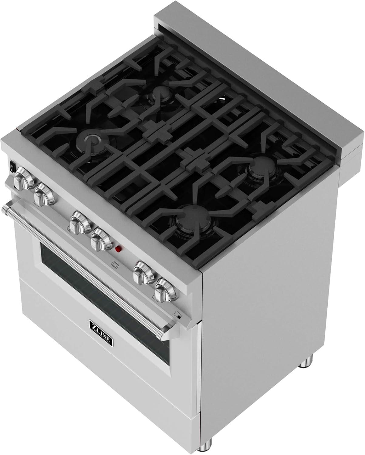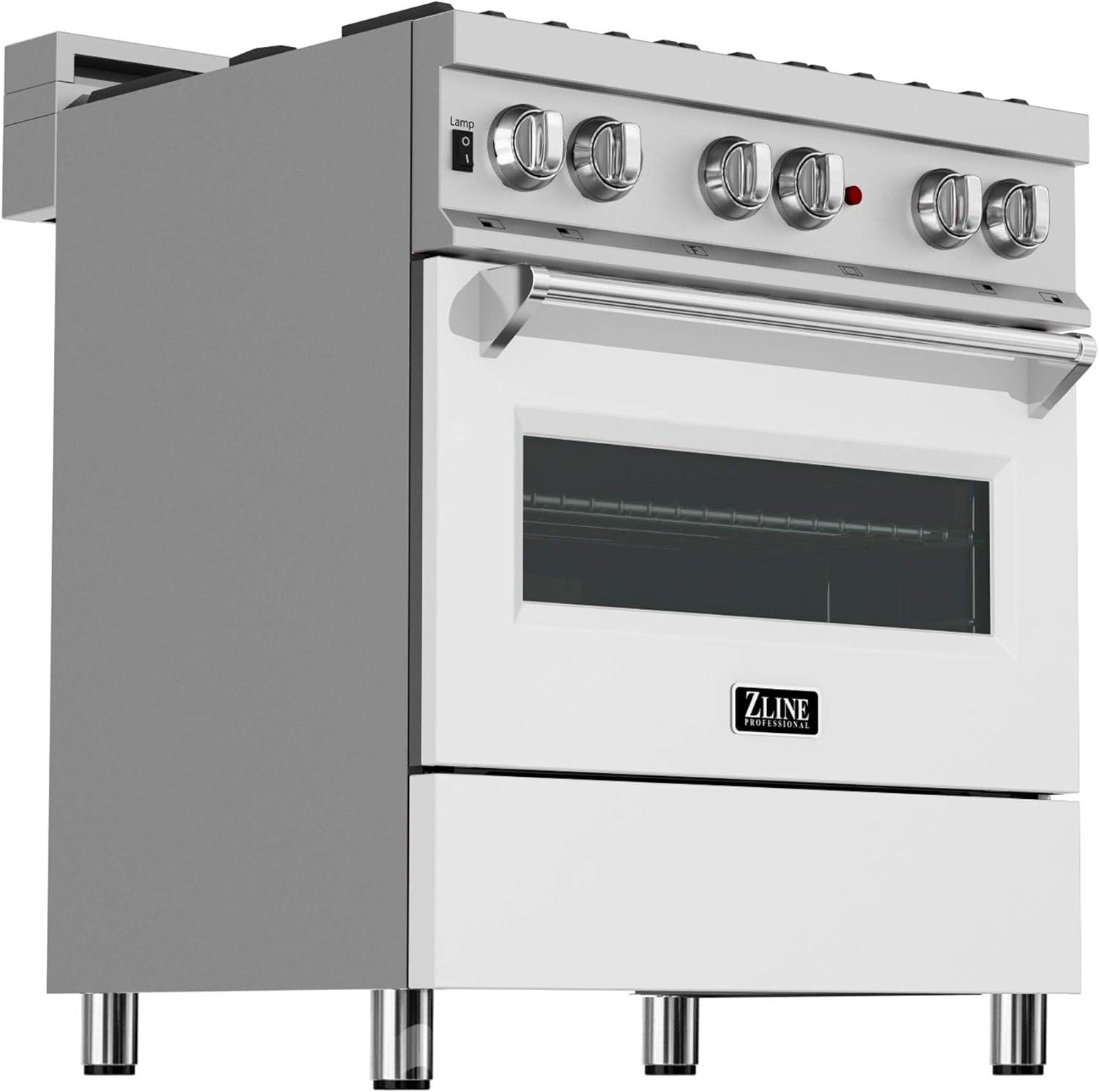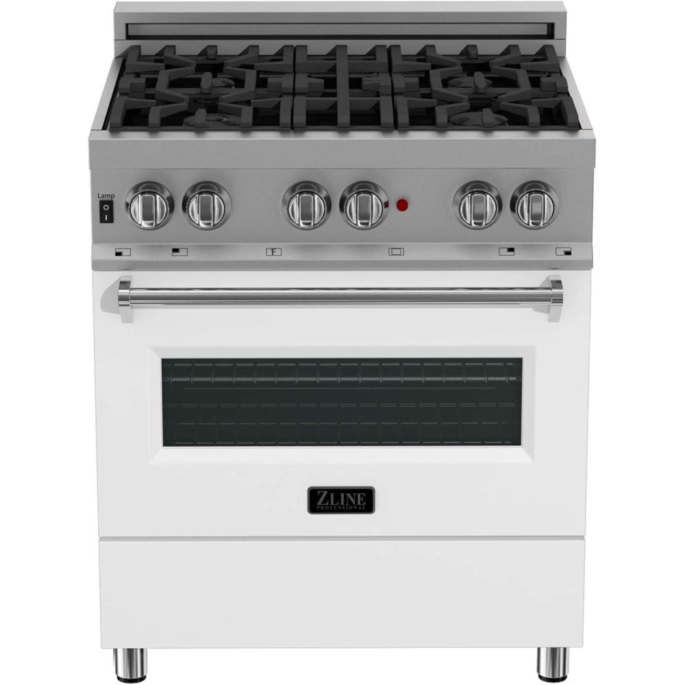 ZLINE 30 in. 4.0 cu. ft. Legacy Dual Fuel Range with 4 Burner Gas Cooktop and Electric Convection Oven in Satin Stainless Steel and White Matte Door (RAS-WM-30)