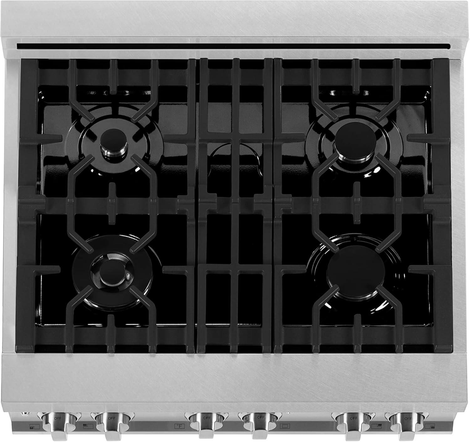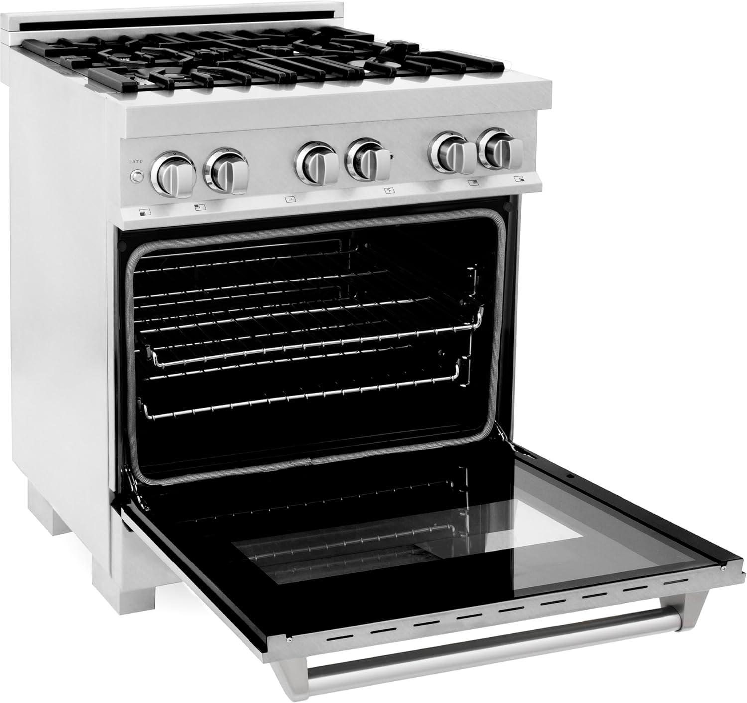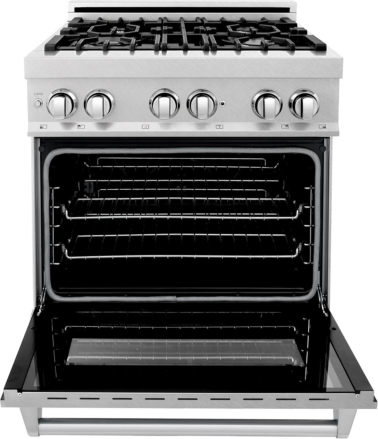 ZLINE 30 in. 4.0 cu. ft. Legacy Dual Fuel Range with 4 Burner Gas Cooktop and Electric Convection Oven in Satin Stainless Steel (RAS-SN-30)