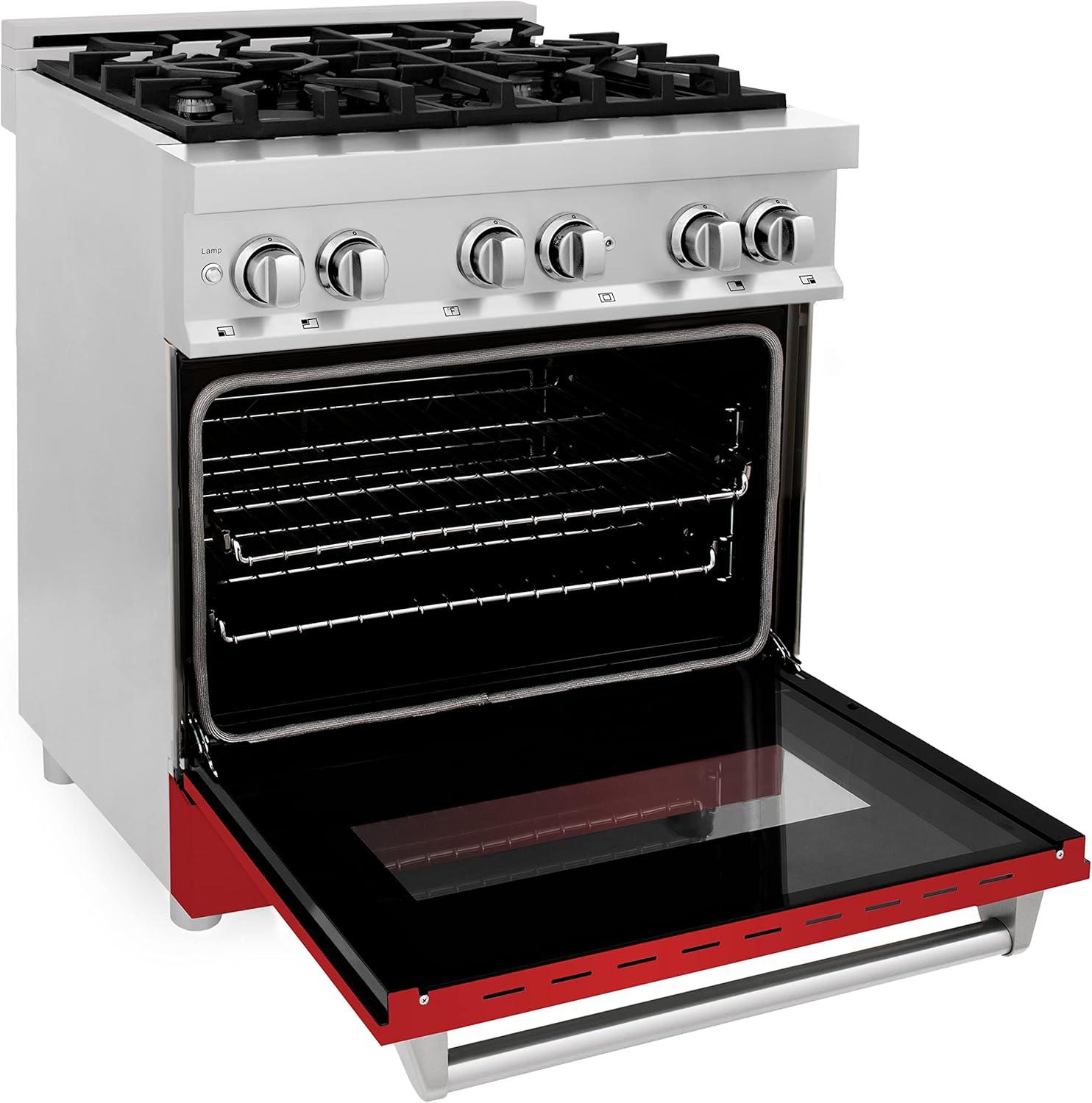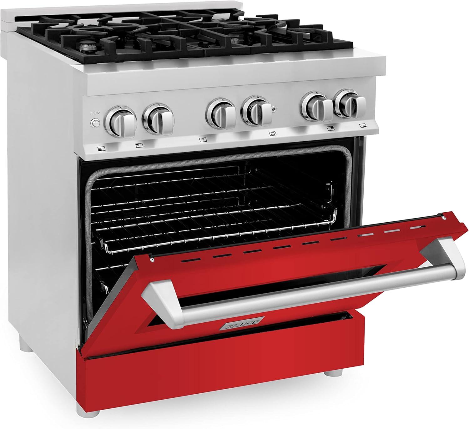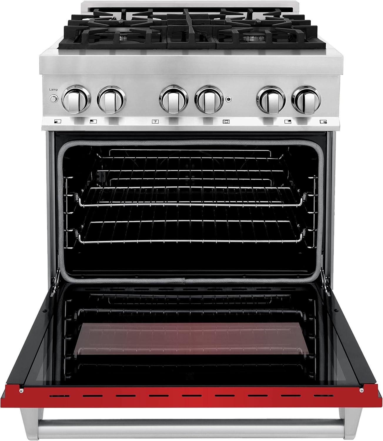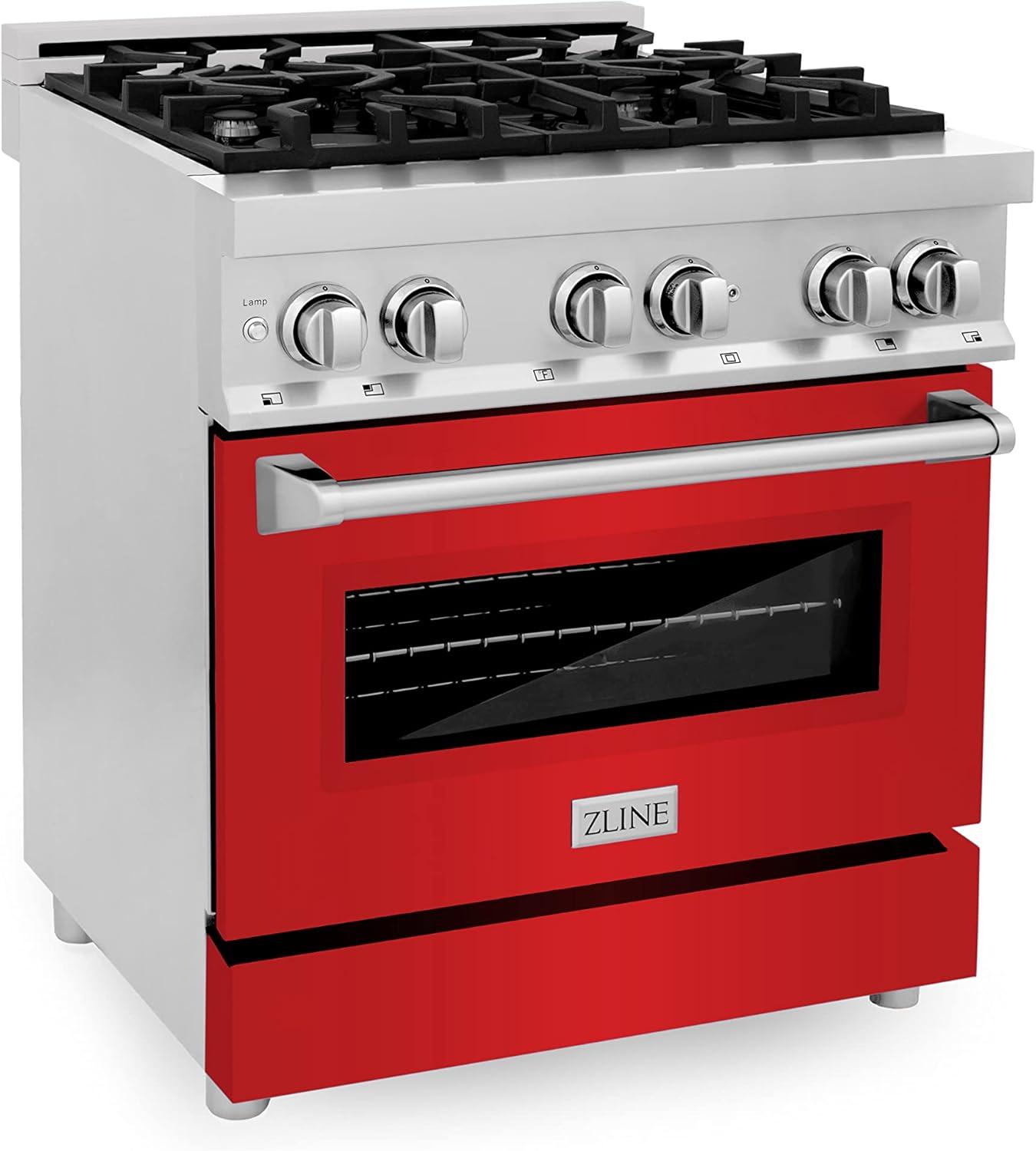 ZLINE 30 in. 4.0 cu. ft. Legacy Dual Fuel Range with 4 Burner Gas Cooktop and Electric Convection Oven in Stainless Steel and Red Matte Door (RA-RM-30)