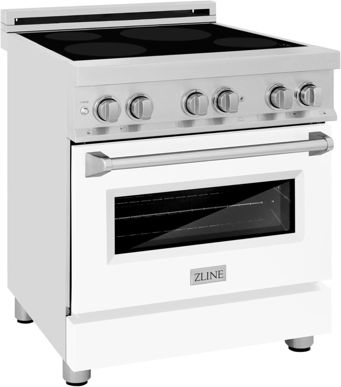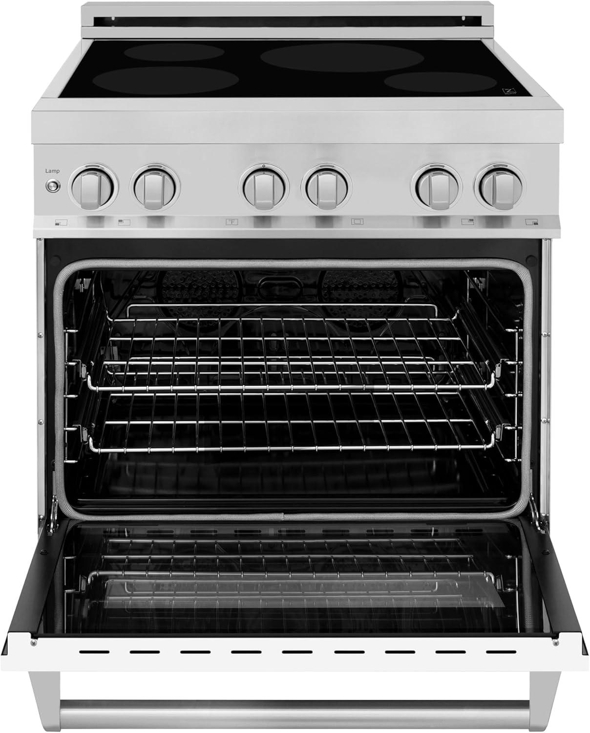 ZLINE 30 in. 4.0 cu. ft. Legacy Induction Range with 4 Element Cooktop and Electric Oven in Stainless Steel and White Matte Door (RAIND-WM-30)