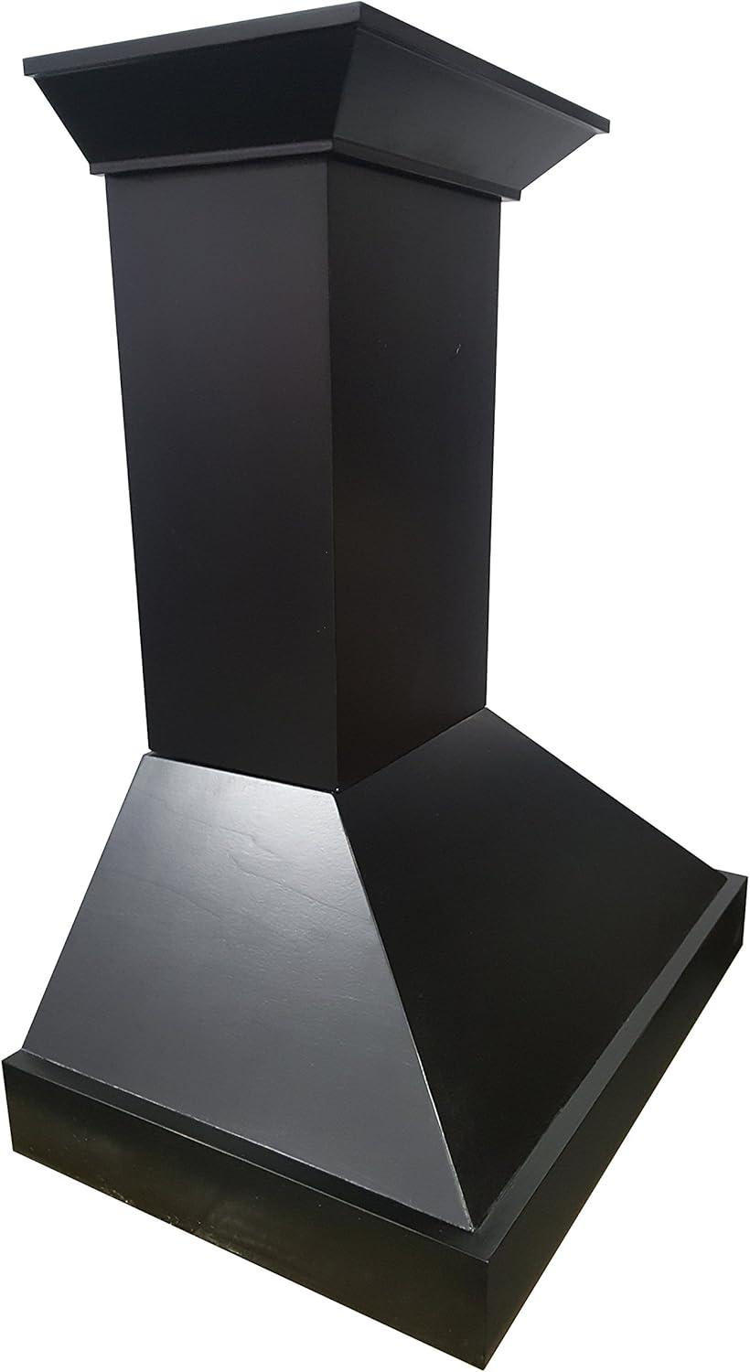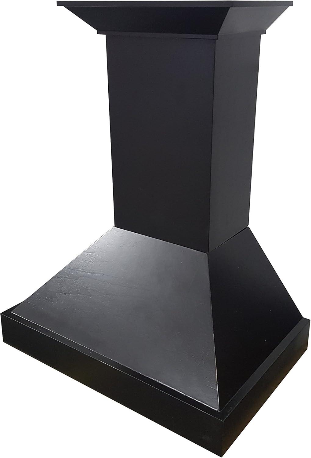 The ZLINE KBCC-30 is a 30-inch wall-mount wooden range hood designed to be both elegant and powerful, featuring the industry's only lifetime warranty motor. The hand-finished wood with a painted black paneling and base, is made from solid pine with a stainless steel inner frame, making it both durable and long-lasting. This classic wooden hood contains many modern features, such as Hand-carved, hand-finished wood; Dishwasher-safe stainless steel baffle filters; Built-in LED lighting; High-performance 4-speed motor with speeds up to 400 CFM. All ZLINE range hoods come equipped with everything needed to easily install and use, including a 24-inch chimney with crown molding. This hood will fit most ceilings up to 9.5 feet, though the chimney is designed to be cut to fit lower ceilings.