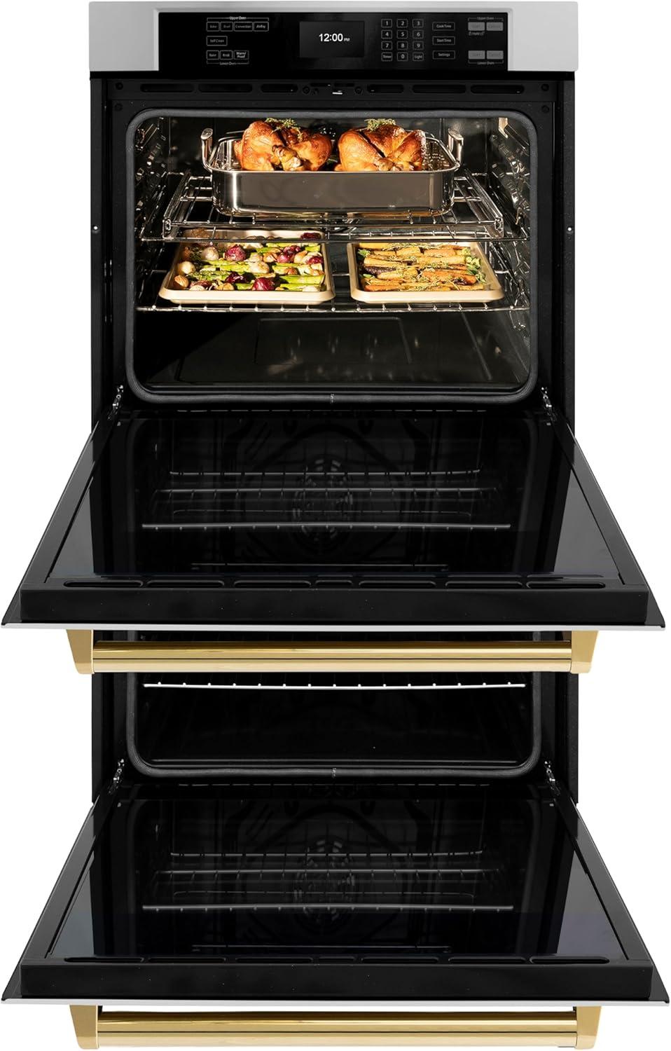 Luxury isn’t meant to be desired – it’s meant to be attainable. The ZLINE 30 in. Autograph Edition Professional True Convection Double Wall Oven with Air Fry and Self Clean in Stainless Steel with Polished Gold Handles (WADZ-30-G) provides a professional culinary experience by pairing reliable, everyday performance with contemporary convection cooking capabilities and cutting-edge air frying technology. Achieve ZLINE Attainable Luxury excellence with innovative features designed to enhance your kitchen’s capability.