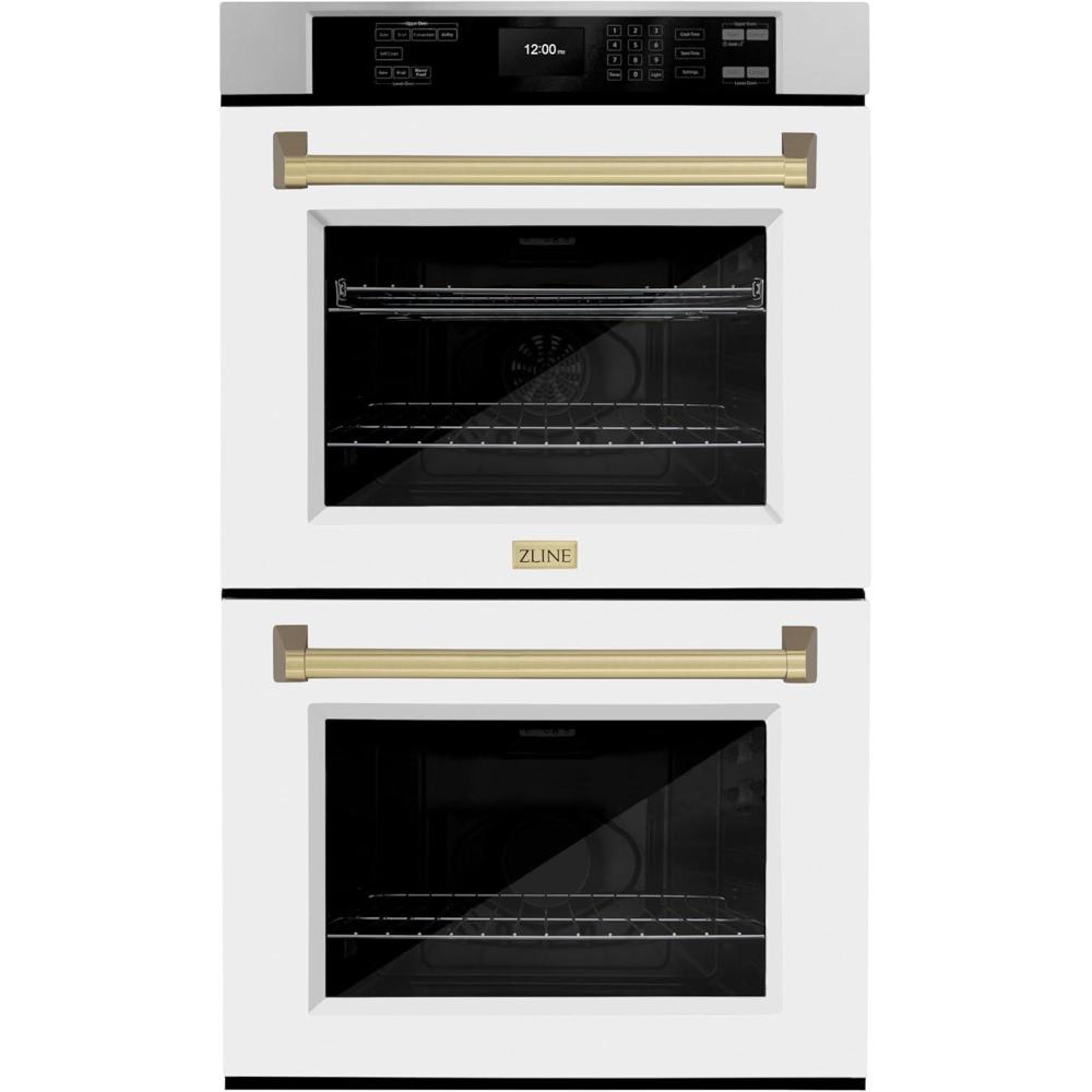 ZLINE 30 in. Autograph Edition Professional True Convection Double Wall Oven with Air Fry and Self Clean in Stainless Steel with White Matte Doors and Champagne Bronze Handles (WADZ-WM-30-CB)