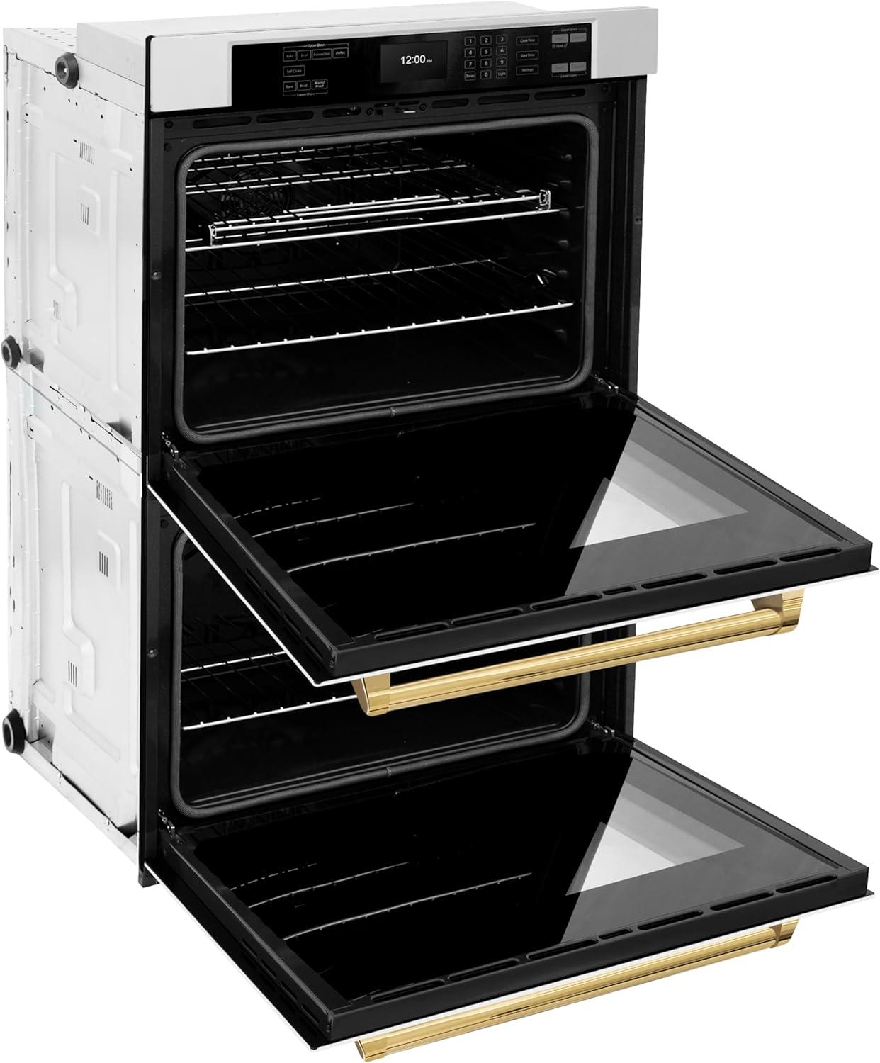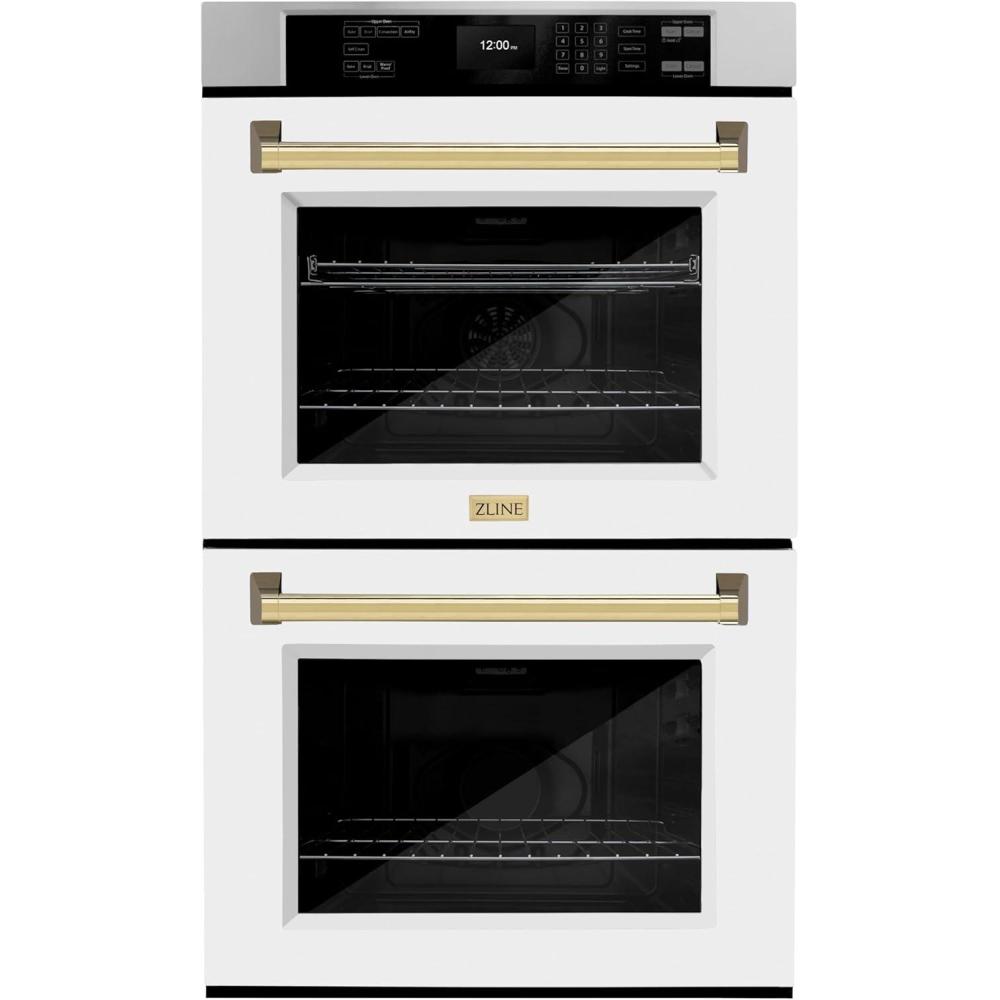 ZLINE 30 in. Autograph Edition Professional True Convection Double Wall Oven with Air Fry and Self Clean in Stainless Steel with White Matte Doors and Polished Gold Handles (WADZ-WM-30-G)