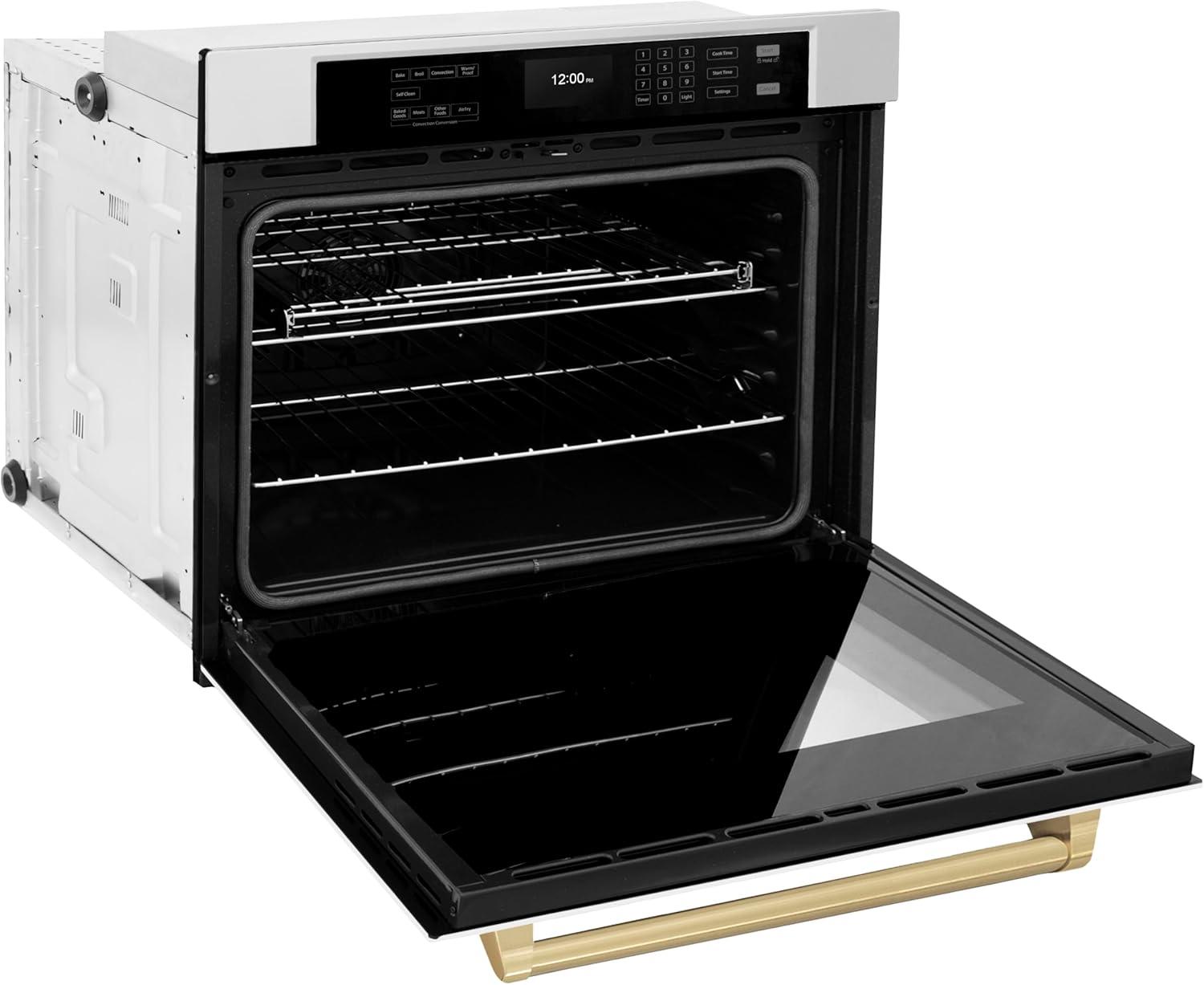Luxury isn’t meant to be desired – it’s meant to be attainable. The ZLINE 30 in. Autograph Edition Professional True Convection Single Wall Oven with Air Fry and Self Clean in Stainless Steel with White Matte Door and Champagne Bronze Handle (WASZ-WM-30-CB) provides a professional culinary experience by pairing reliable, everyday performance with contemporary convection cooking capabilities and cutting-edge air frying technology. Achieve ZLINE Attainable Luxury excellence with innovative features designed to enhance your kitchen’s capability.