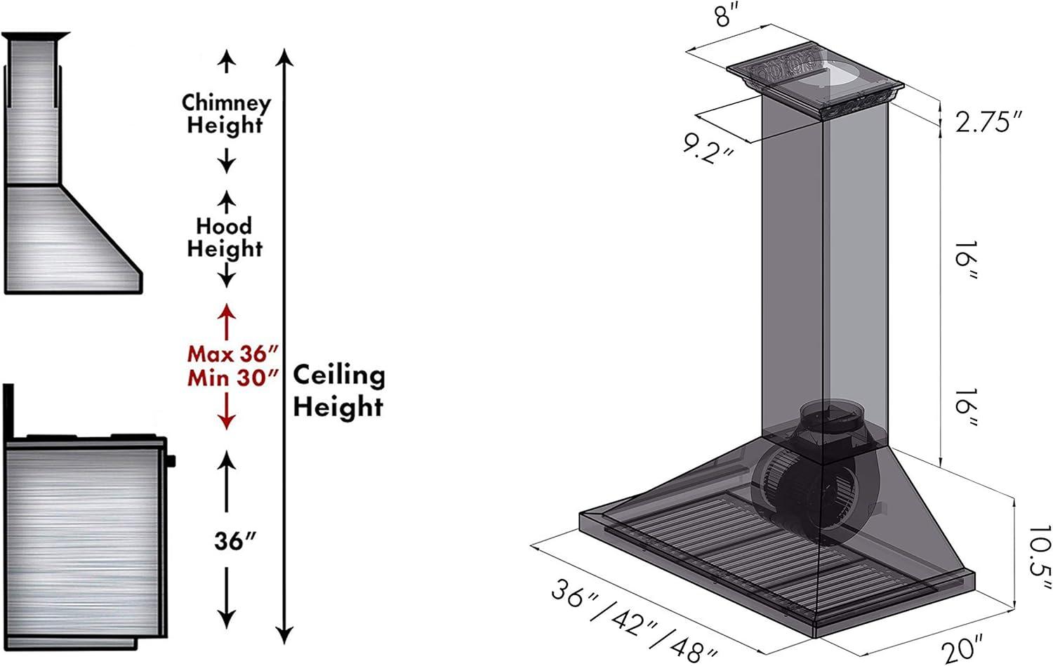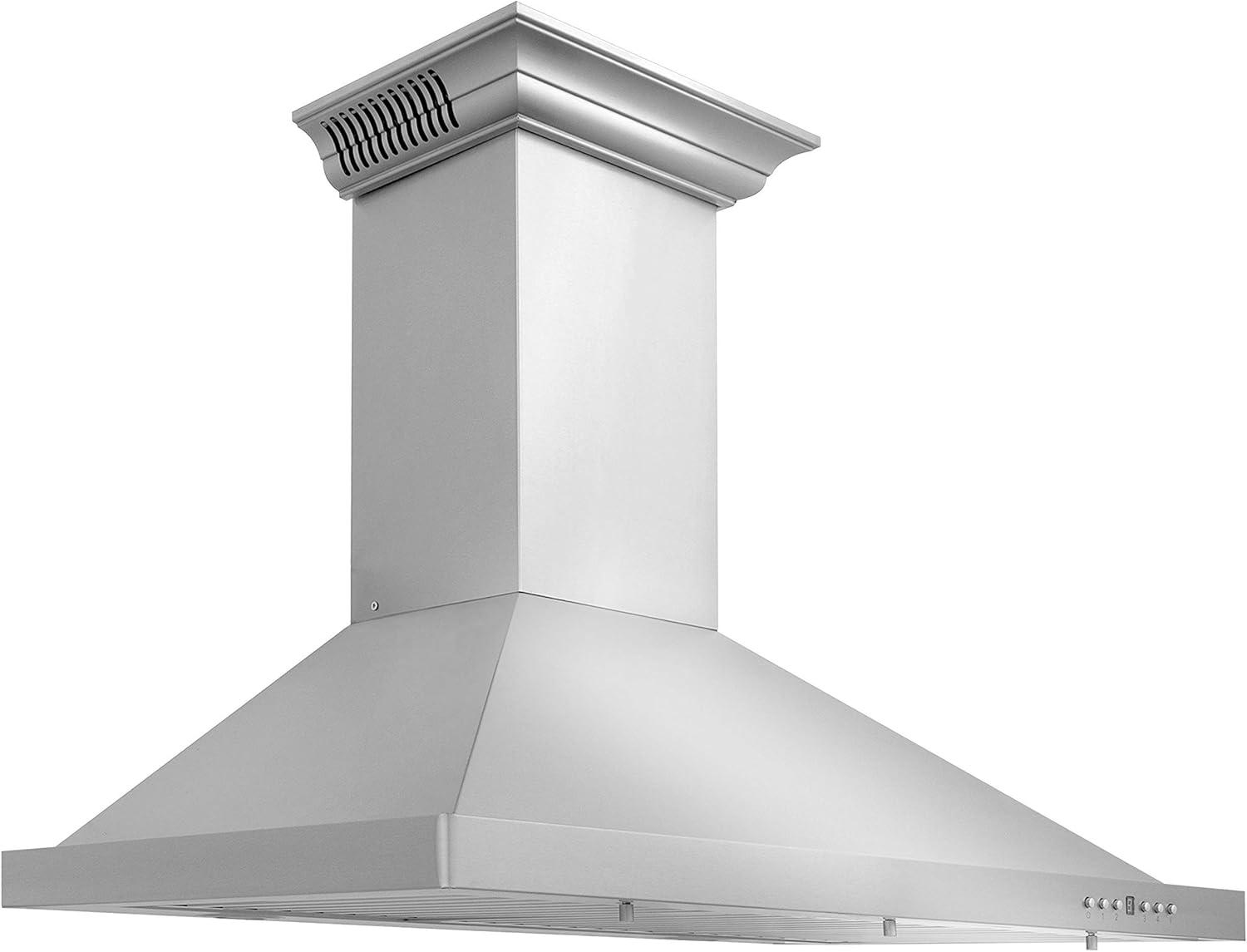 The ZLINE Wall Mount Range Hood with Built-in CrownSound Bluetooth Speakers transforms the seamless, elegant ceiling transition of ZLINE Range Hoods into a high-fidelity, wireless sound system, creating the perfect entertainment area for you and your guests. With CrownSound, you can pair your smart device up to 50 feet away for optimal access and control of audio in your kitchen. The high-performance 400 CFM, 4-speed motor provides all the power you need to quietly and efficiently ventilate your kitchen while hosting kitchen dance parties or listening to your favorite podcasts. Achieve a functional, modern upgrade that is perfectly harmonized in your favorite ZLINE Range Hood designs. ZLINE hoods are ETL and UL Listed and have one of the easiest installations in the industry. ZLINE continues to revolutionize the industry by providing our customers with Attainable Luxury. ZLINE proudly stands by the longevity and durability of their range hoods alongside its 3 year manufacturer parts warranty.