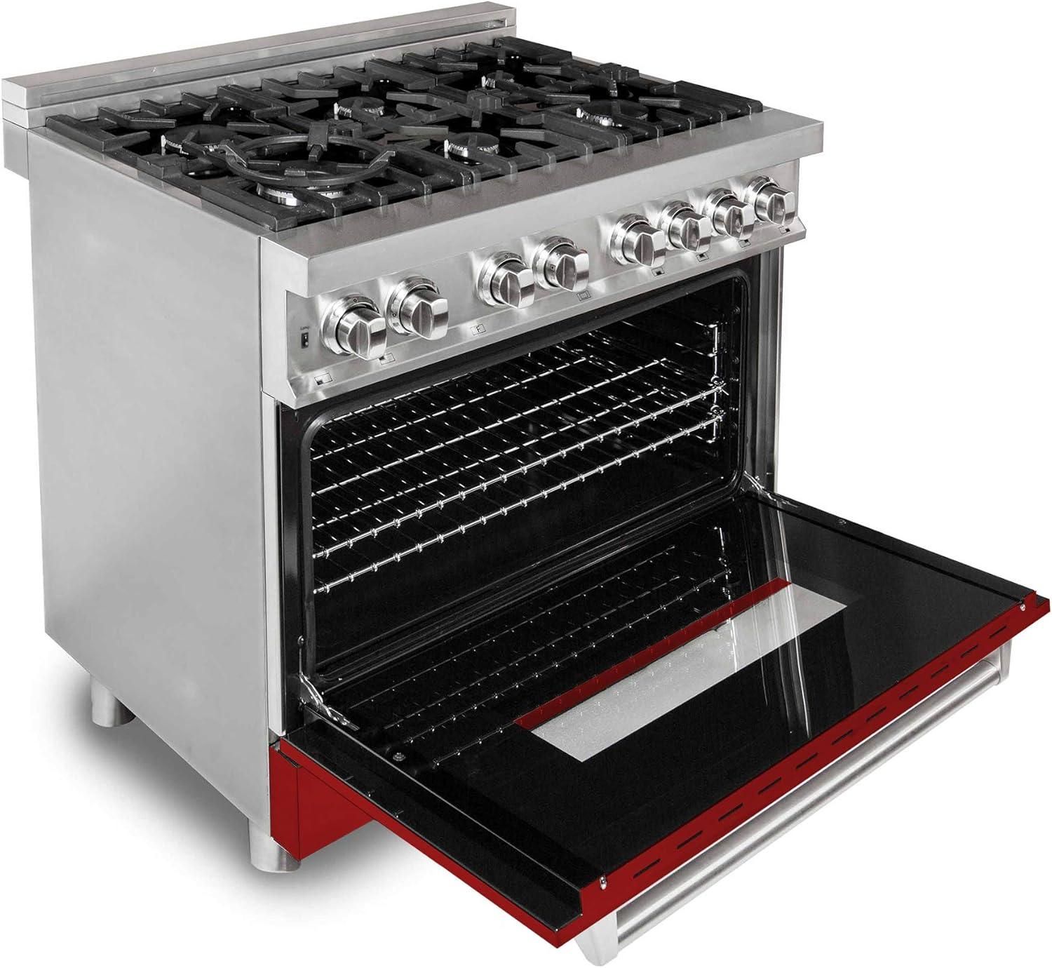 Custom Door Finish – Outfit your ZLINE Legacy Dual Fuel Range with a beautiful Red Gloss oven door