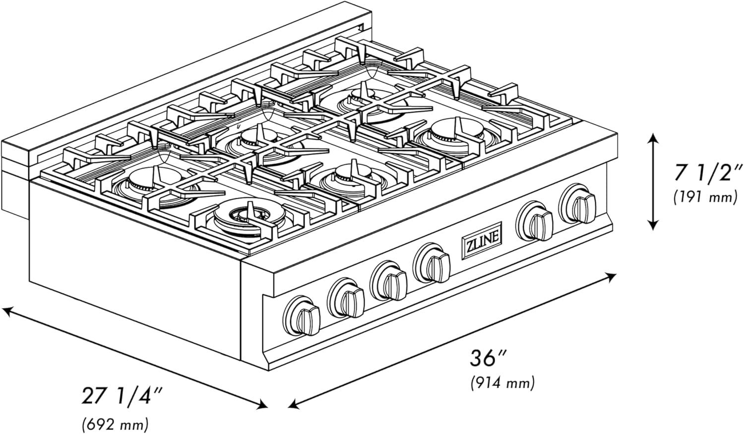 Be the first to review “ZLINE 36 in. Classic Gas Rangetop with 6 Burners and Porcelain Cooktop in Stainless Steel (RT36)”