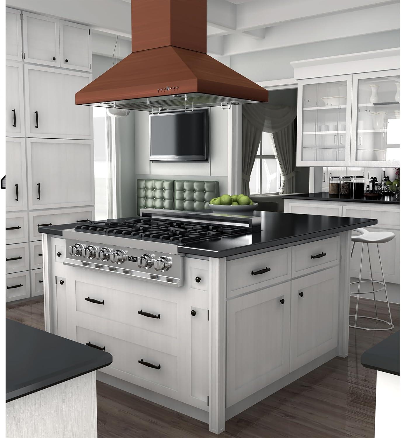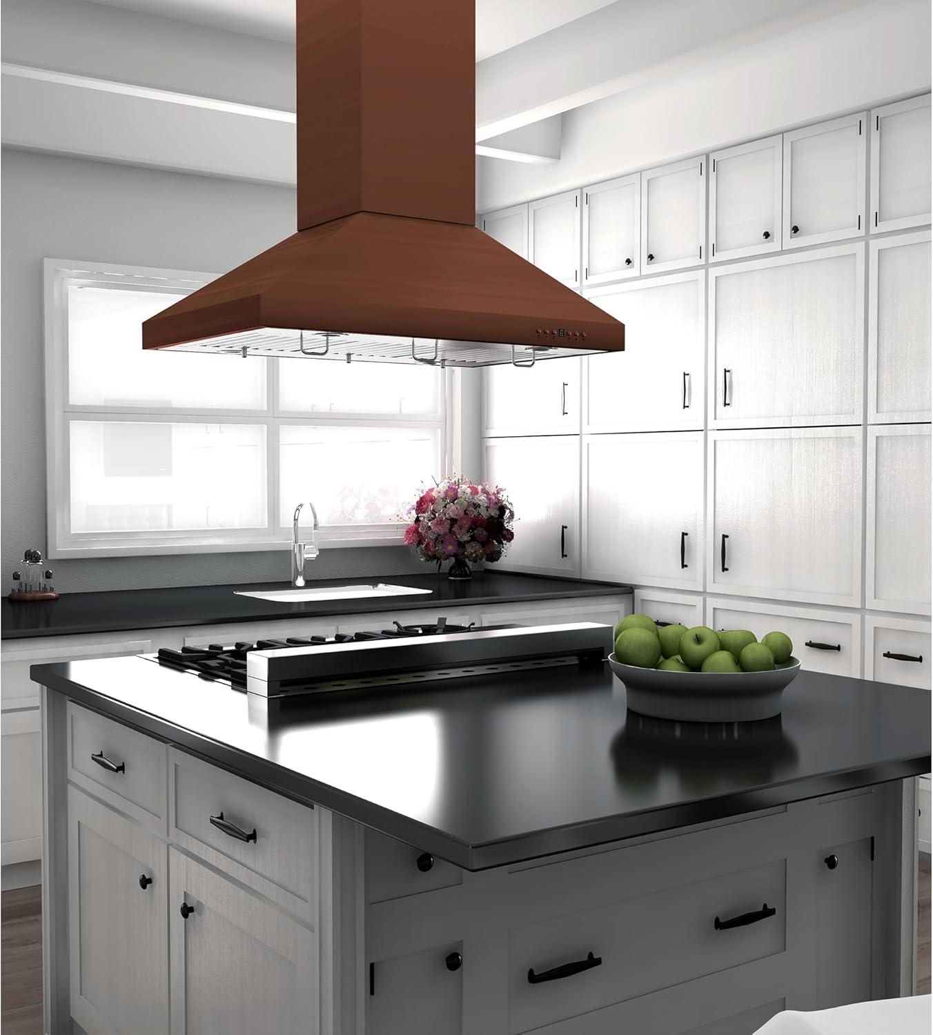 ZLINE 36 in. 760 CFM Designer Series Oil-Rubbed Bronze Island Mount Range Hood (8KL3iB-36) has a modern design and built-to-last quality that would make it a great addition to any home or kitchen remodel. This hood’s high-performance 4-speed motor will provide all the power you need to quietly and efficiently ventilate your kitchen while cooking. Modern features, including built-in lighting and dishwasher-safe stainless steel baffle filters for easy clean-up, will make using this hood a simple, enjoyable experience for years to come. ZLINE Hoods are ETL Listed and have one of the easiest installations in the industry. Includes a 36 in. chimney with elegant crown molding for ceilings up to 10 ft. (must be custom cut to appropriate height). ZLINE stands by all products with its Manufacturer Parts .