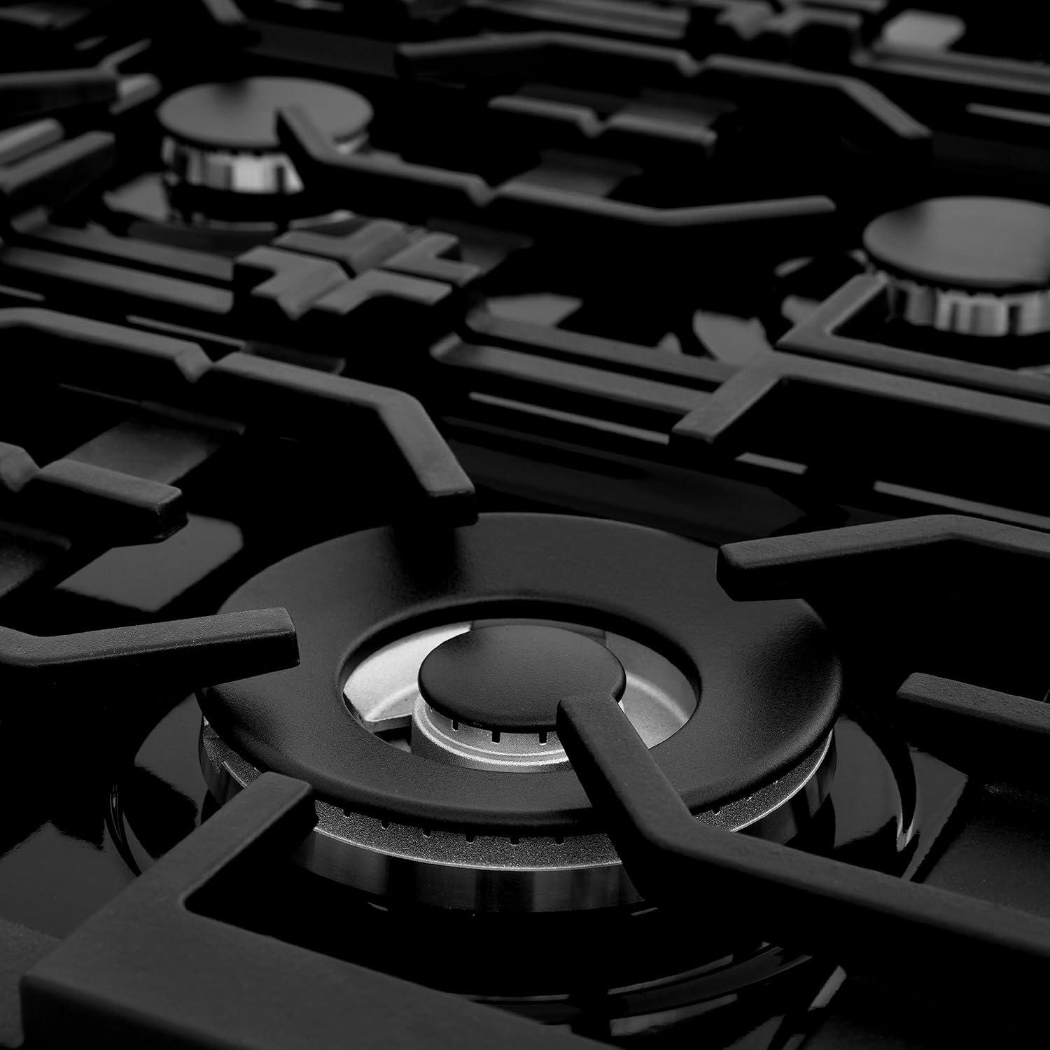 ZLINE Autograph Edition 36 in. Legacy Gas Rangetop with 6 Burners and Porcelain Cooktop in Black Stainless Steel with Polished Gold Accents (RTBZ-36-G)