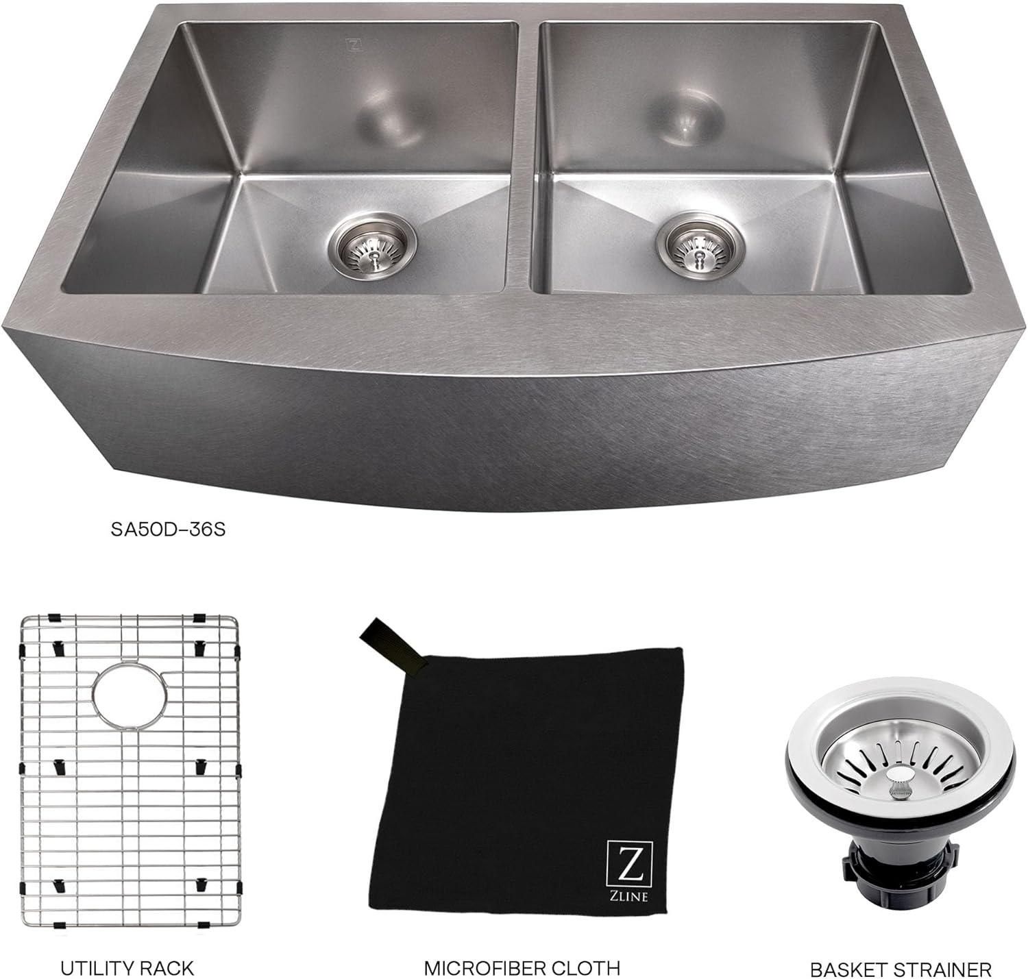 Luxury isn’t meant to be left desired—it’s meant to be attainable. The ZLINE 36 in. Niseko Farmhouse Apron Mount Double Bowl Satin Stainless Steel Kitchen Sink with Bottom Grid (SA50D-36S) provides a superior cleaning experience by pairing unmatched quality with optimal functionality and performance. Achieve ZLINE Attainable Luxury excellence with innovative features designed to enhance your kitchen’s capability.