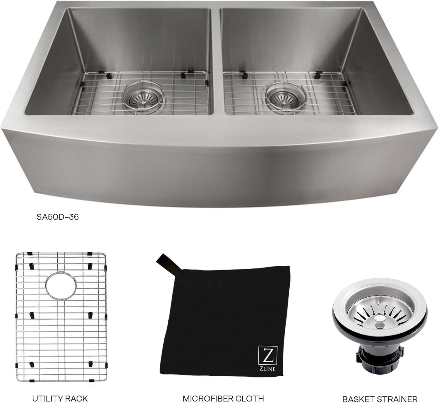 Luxury isn’t meant to be left desired—it’s meant to be attainable. The ZLINE 36 in. Niseko Farmhouse Apron Mount Double Bowl Stainless Steel Kitchen Sink with Bottom Grid (SA50D-36) provides a superior cleaning experience by pairing unmatched quality with optimal functionality and performance. Achieve ZLINE Attainable Luxury excellence with innovative features designed to enhance your kitchen’s capability.