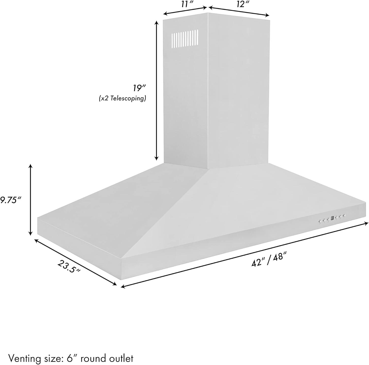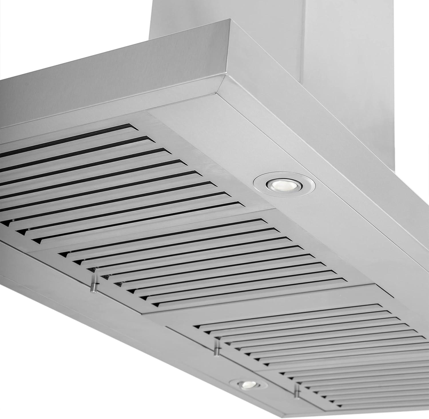 ZLINE 42 in. 760 CFM Island Mount Range Hood in Stainless Steel with Crown Molding (KL3i-42) has a modern design and built-to-last quality that would make it a great addition to any home or kitchen remodel. This hood’s high-performance 4-speed motor will provide all the power you need to quietly and efficiently ventilate your kitchen while cooking. Modern features, including built-in lighting and dishwasher-safe stainless steel baffle filters for easy clean-up, will make using this hood a simple, enjoyable experience for years to come. ZLINE Hoods are ETL Listed and have one of the easiest installations in the industry. Includes two(2)-16 in. telescoping chimney pieces for approximately 8-9 ft. ceilings. Chimney Short Kits and Extensions (not included) are available for shorter or taller ceilings. Charcoal Filters (not included) available for Ductless Option. ZLINE stands by all products with its Manufacturer Parts .