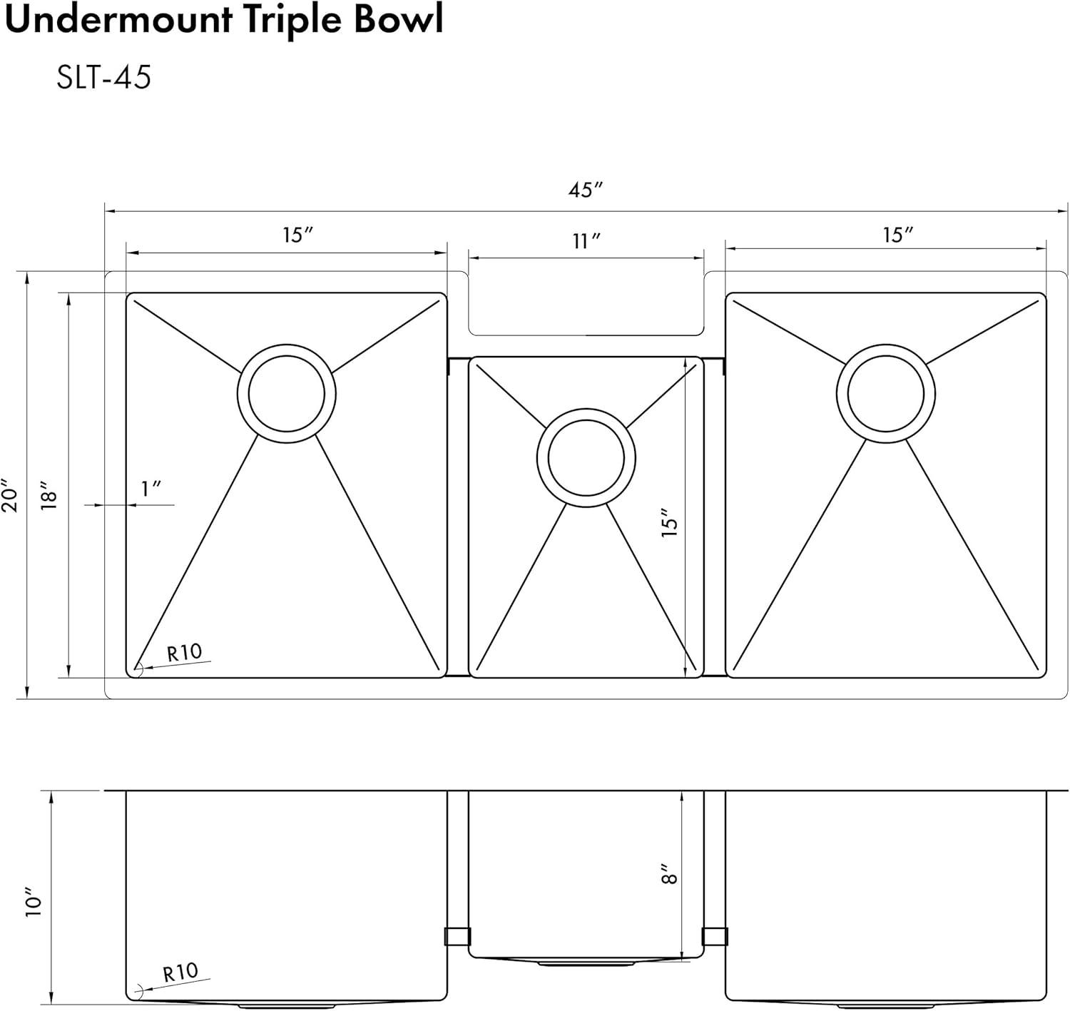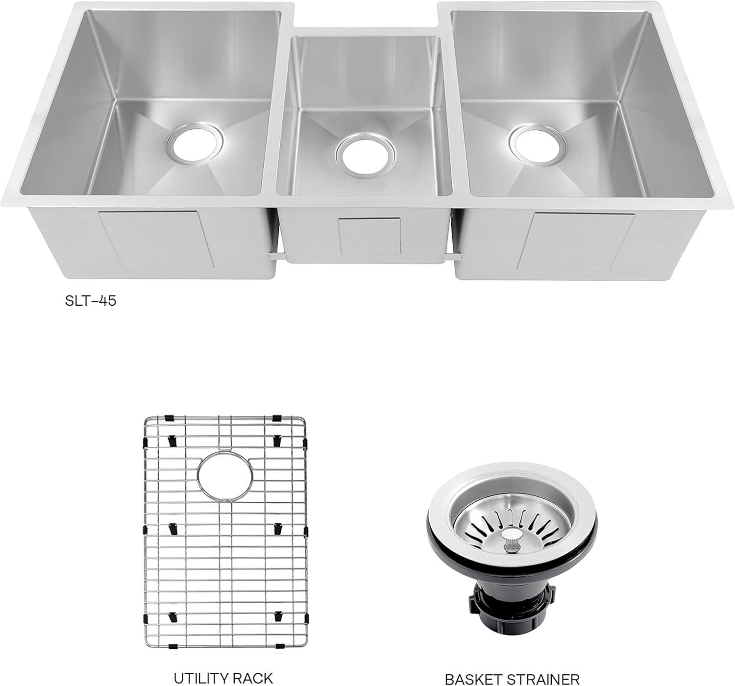 Luxury isn’t meant to be left desired—it’s meant to be attainable. The ZLINE 45 in. Breckenridge Undermount Triple Bowl Satin Stainless Steel Kitchen Sink with Bottom Grid (SLT-45S) provides a superior cleaning experience by pairing unmatched quality with optimal functionality and performance. Achieve ZLINE Attainable Luxury excellence with innovative features designed to enhance your kitchen’s capability.