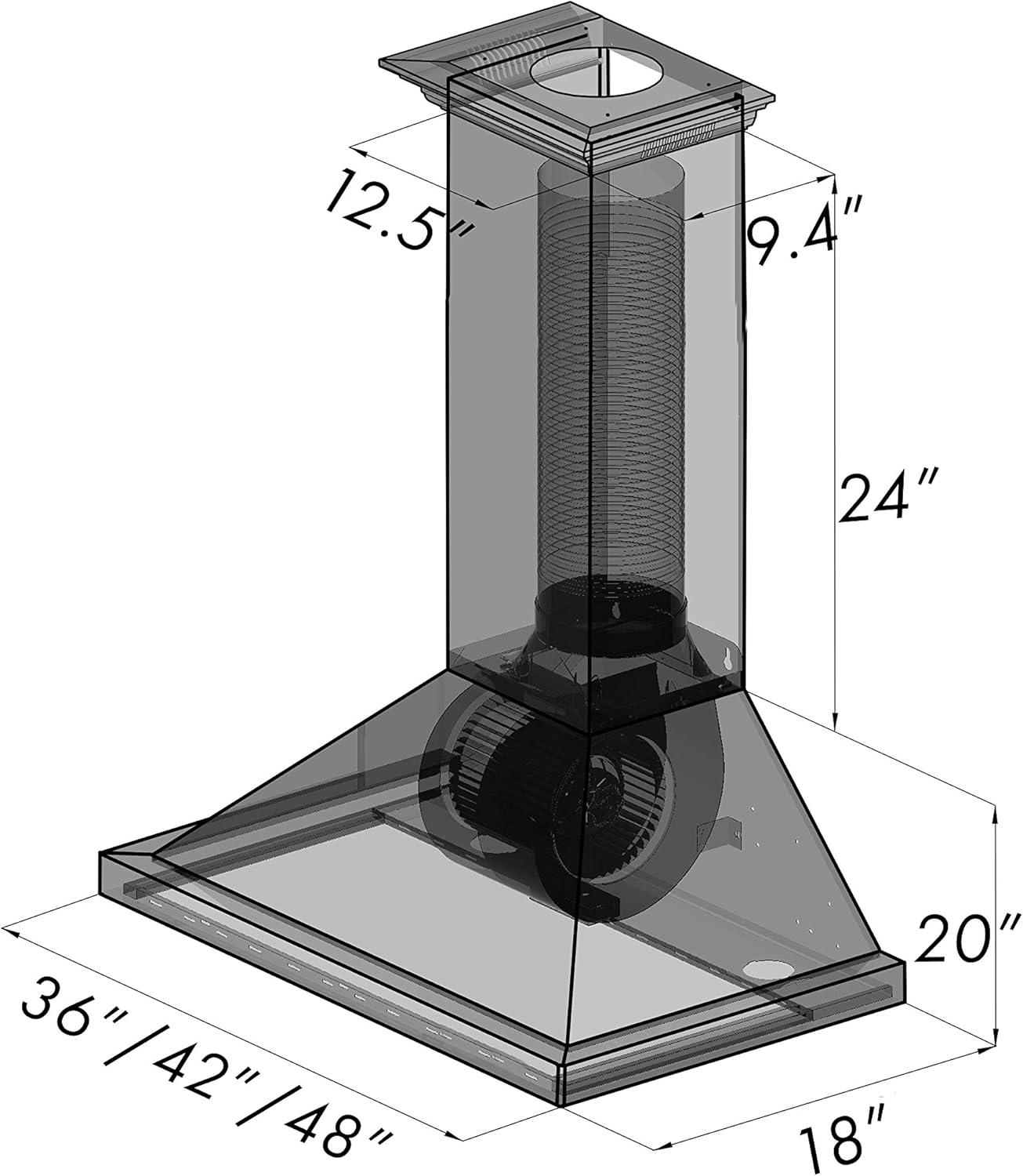 The ZLINE KBRR-48 is a 48 in. Designer Series Wooden Wall Mount Range Hood with a modern design and built-to-last quality that would make it a great addition to any home or kitchen remodel. The walnut hand-finished wood is made from solid pine with a stainless-steel inner frame. This convertible vent range hood comes with a high-performance, 400 CFM, 4-speed motor (120/240/320/400 CFM) that will provide all the power you need to quietly and efficiently ventilate your stove while cooking. Modern features, including built-in LED lighting and dishwasher-safe stainless steel baffle filters for easy clean-up, will make using this vent hood a simple, enjoyable experience for years to come. This wall mount range hood has a convertible vent, so you can have a luxury range hood whether you need a ducted or ductless option. ZLINE Range Hoods are ETL Listed and have one of the easiest installations in the industry. ZLINE stands by all products with its manufacturer parts warranty.