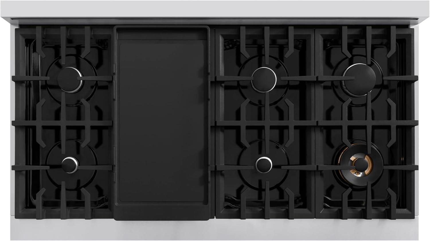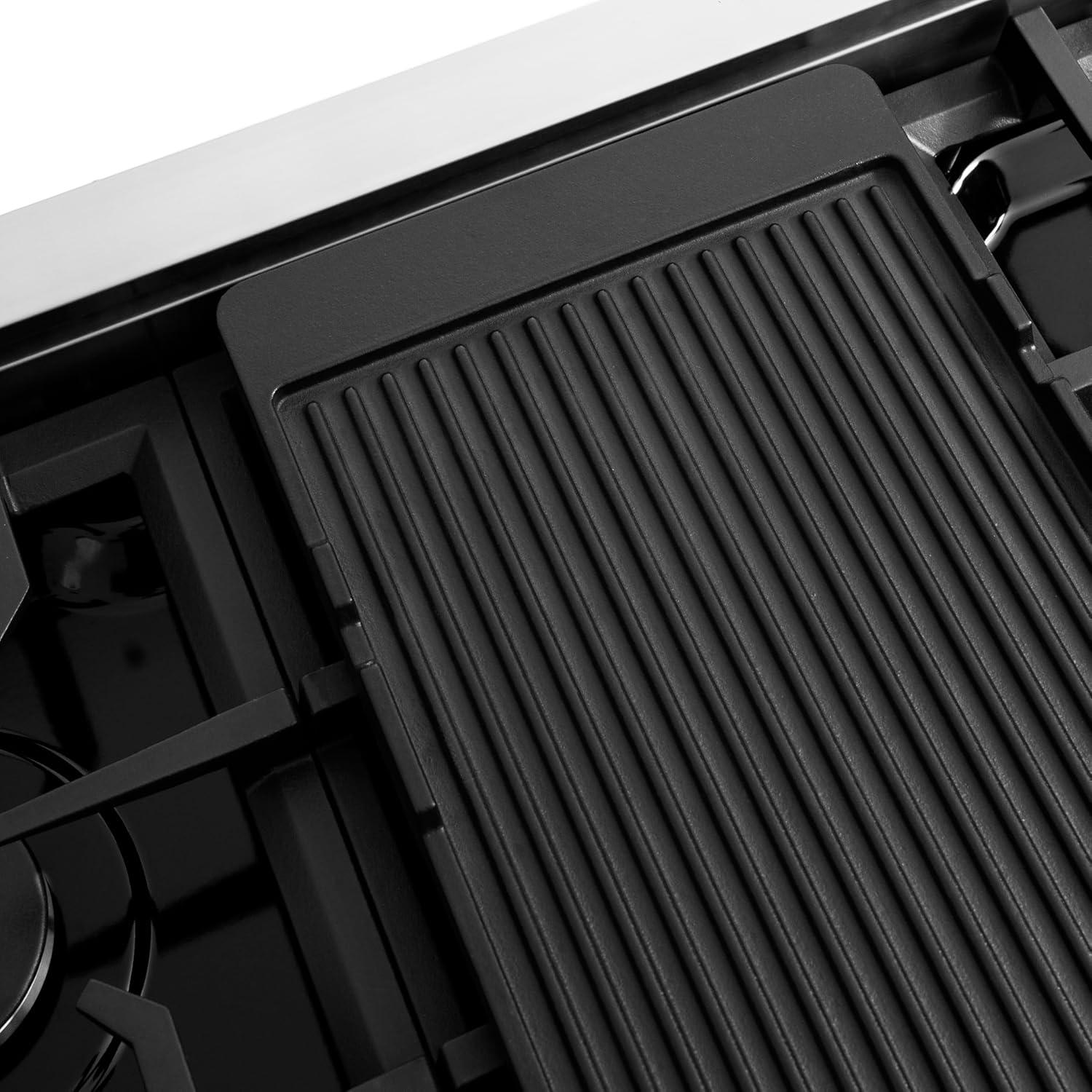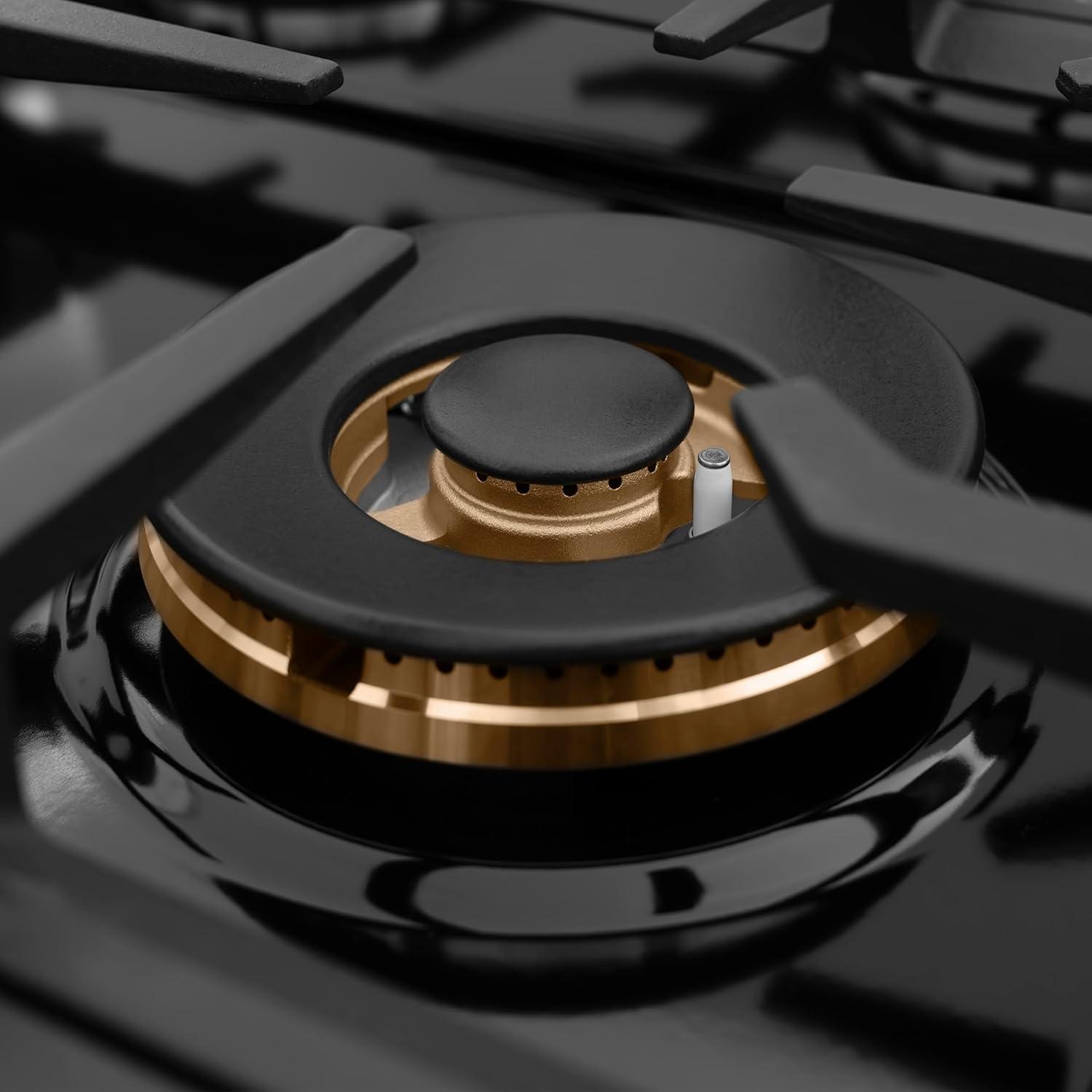 Professional Cooktop Design – Featuring a sleek cast iron grate design for a bold style and easy transferring of cookware to various burners