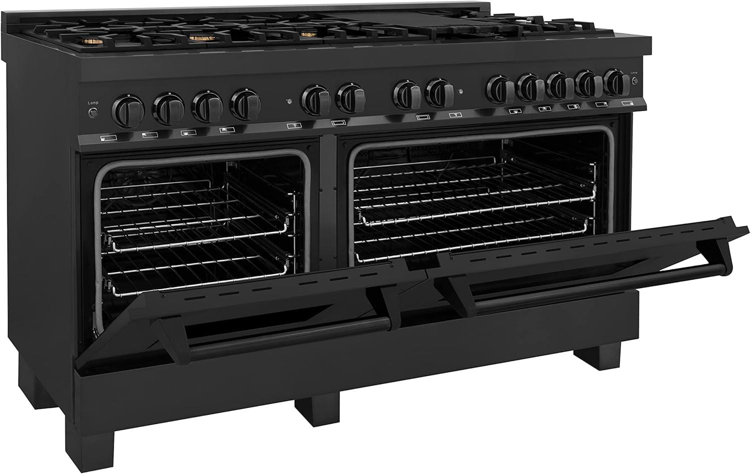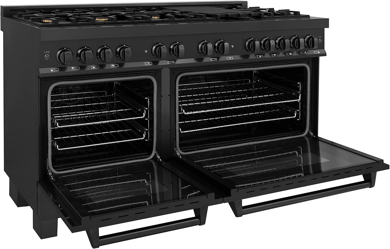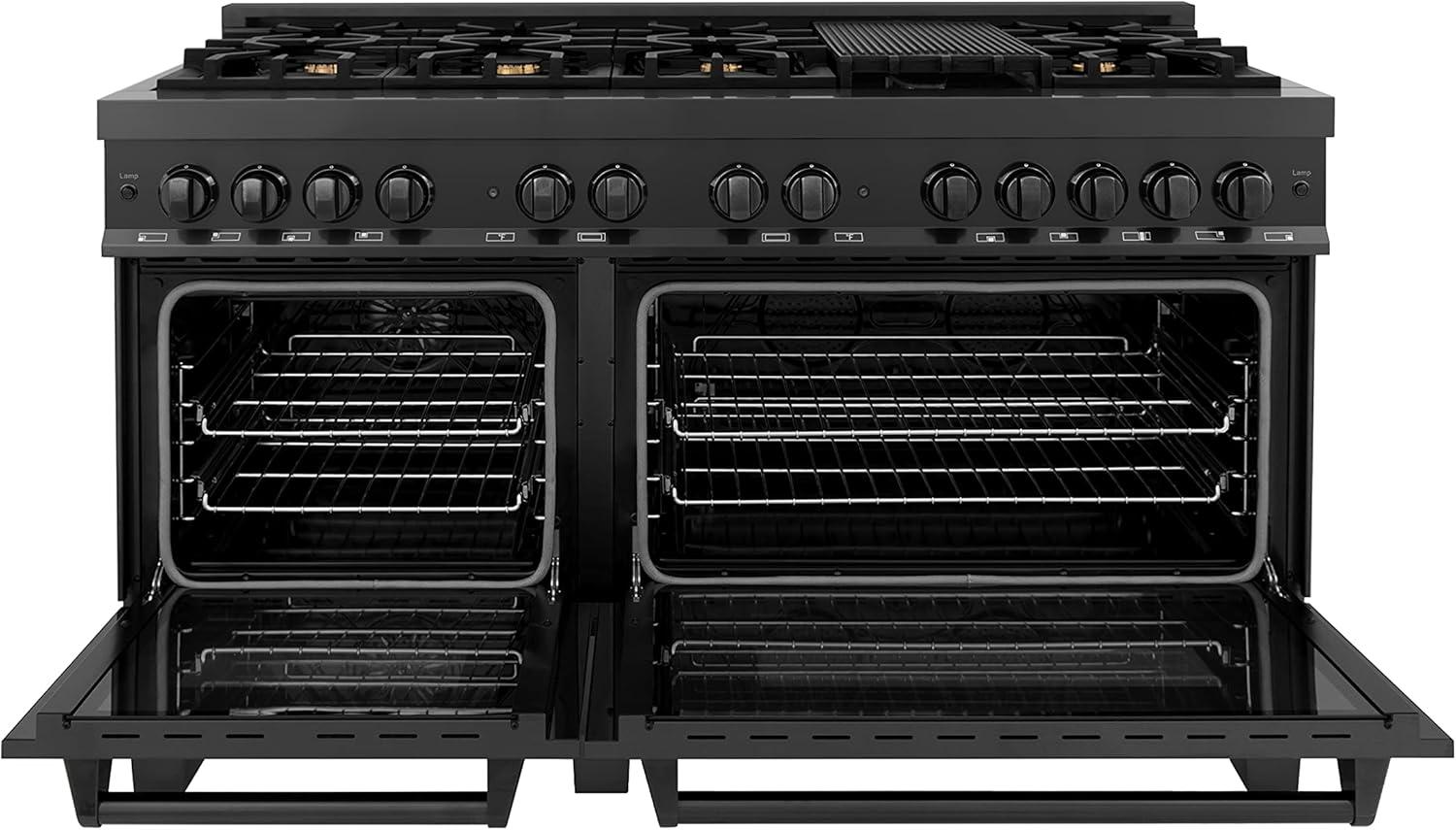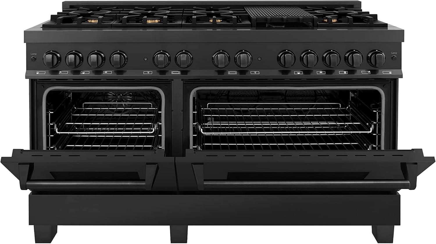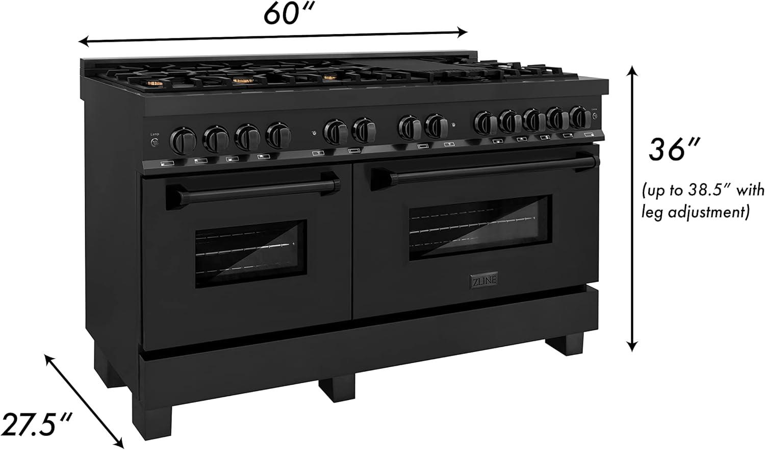 Luxury isn’t meant to be desired – it’s meant to be attainable. The ZLINE 60 in. 7.4 cu. ft. Legacy Dual Fuel Range with 9 Burner Gas Cooktop and 2 Electric Convection Ovens in Black Stainless Steel (RAB-60) pairs a powerful gas cooktop with 9 Italian-crafted burners and dual electric convection ovens with Landscape oven door window designs. With innovative features designed to enhance your kitchen’s capability, ZLINE Legacy Dual Fuel Ranges provide a professional culinary experience by pairing unmatched performance with timeless style.