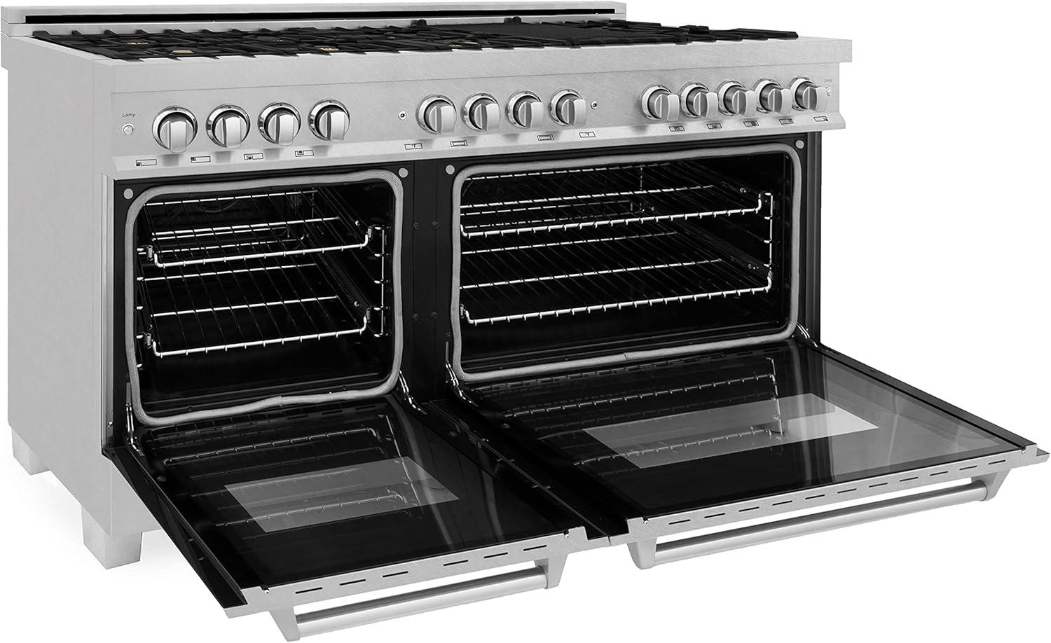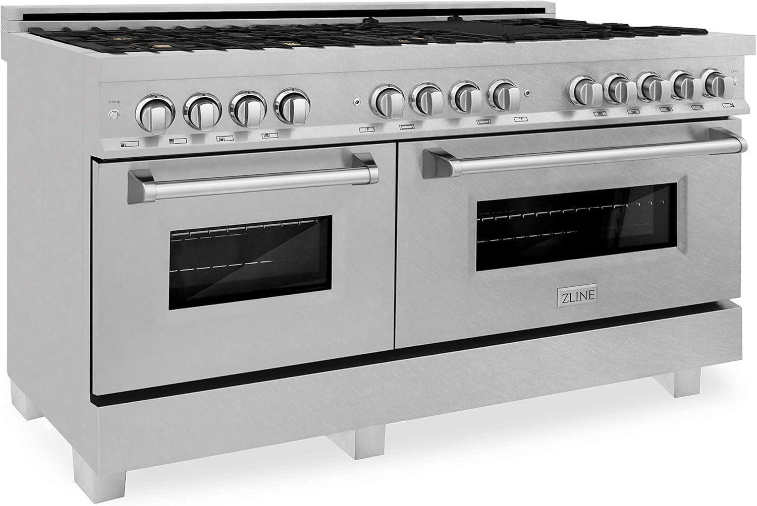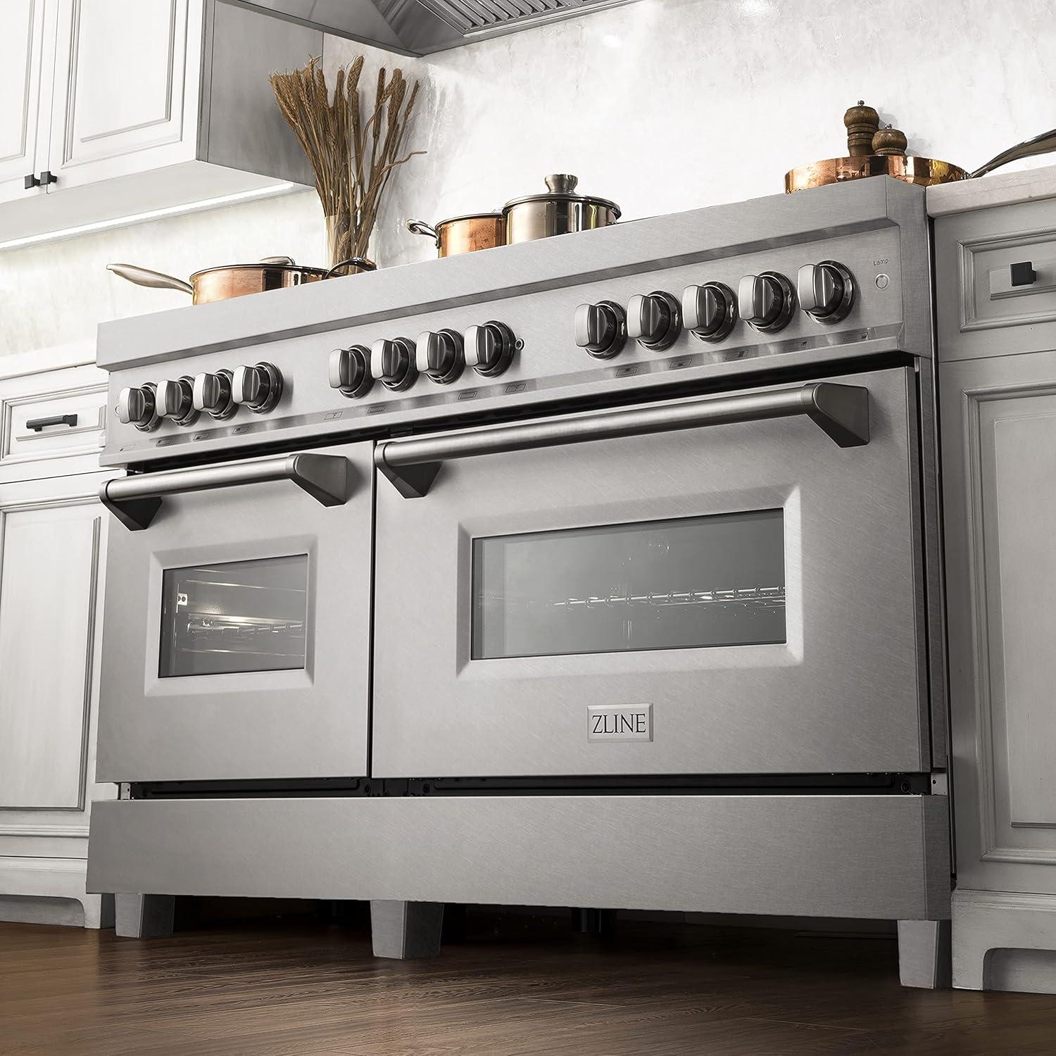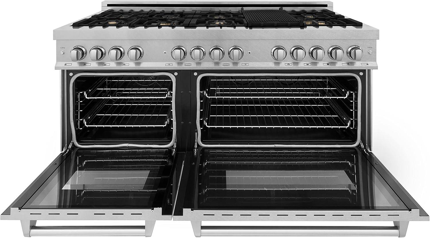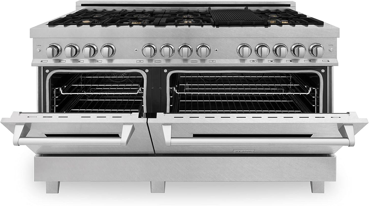 Luxury isn’t meant to be left desired — it’s meant to be attainable. The ZLINE 60 in. 7.4 cu. ft. Legacy Dual Fuel Range with Gas Cooktop and 2 Electric Convection Ovens in Satin Stainless Steel with 8 Brass Burners (RAS-SN-BR-60) pairs a powerful gas cooktop with 8 Italian-crafted brass burners and dual electric convection ovens with Landscape oven door window designs. With innovative features designed to enhance your kitchen’s capability, ZLINE Legacy Dual Fuel Ranges provide a professional culinary experience by pairing unmatched performance with timeless style.