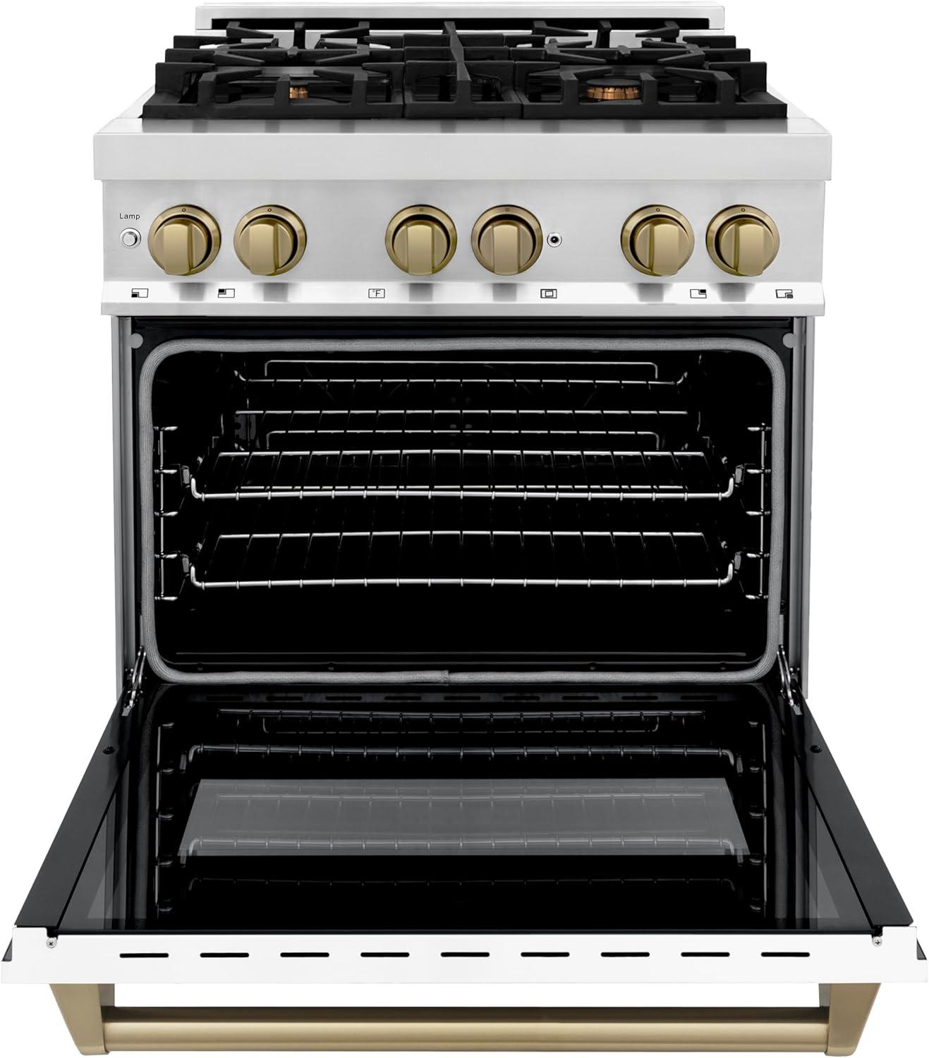 ZLINE Autograph 30" Legacy Dual Fuel Range w/ 4 Burners & White & Bronze Accents (RAZ-WM-30-CB)