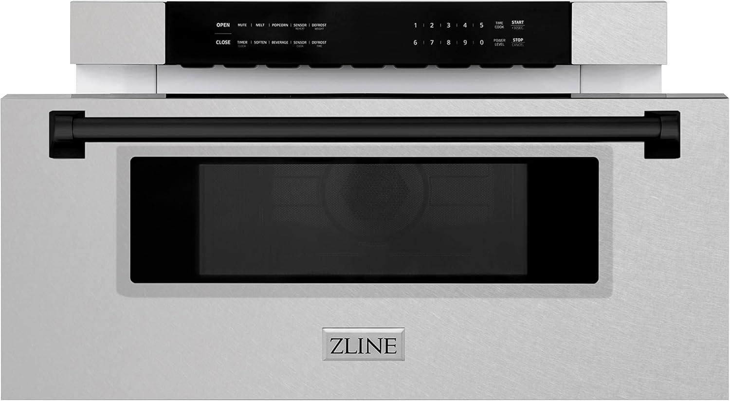 ZLINE Autograph Edition 30″ 1.2 cu. ft. Built-In Microwave Drawer in Stainless Steel with Matte Black Accents