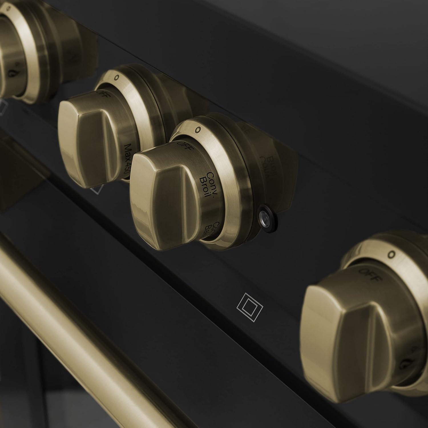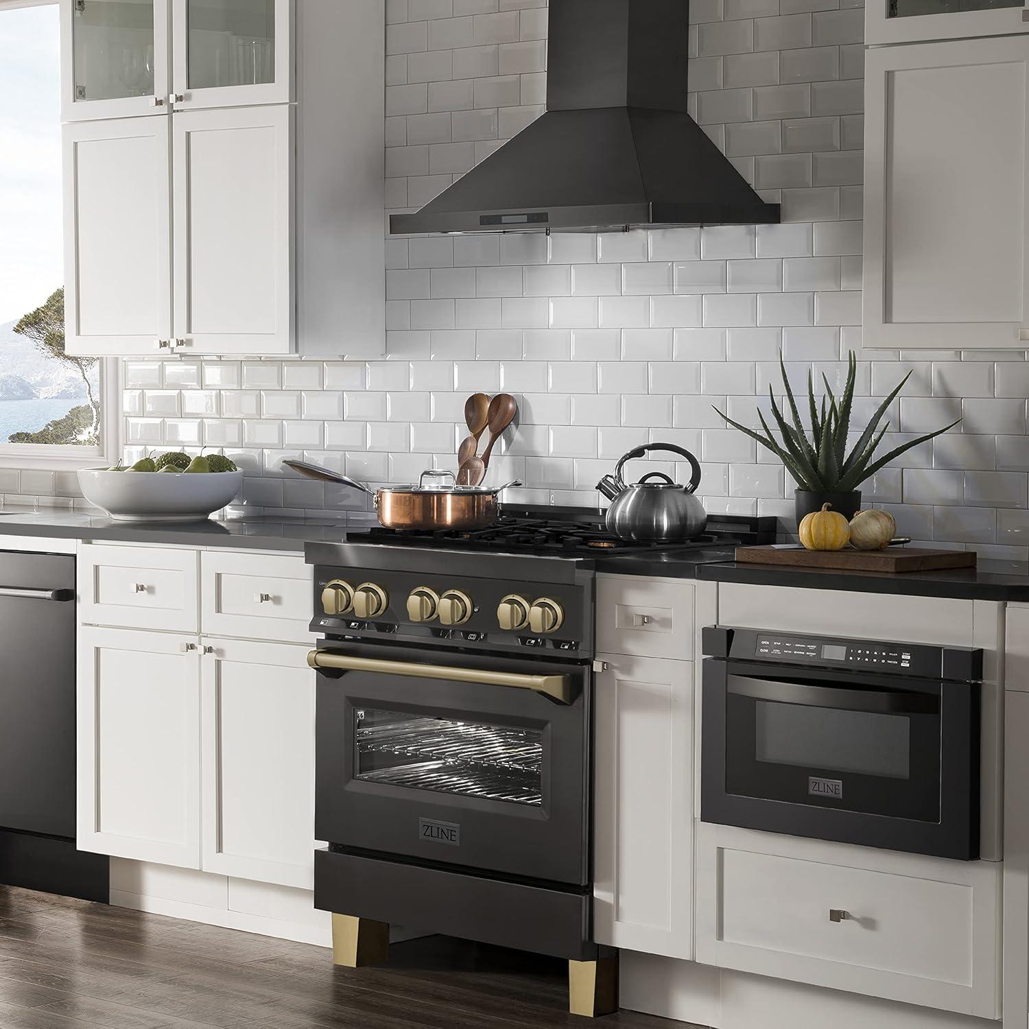 Luxury isn’t meant to be desired – it’s meant to be attainable. The ZLINE Autograph Edition 30 in. 4.0 cu. ft. Legacy Dual Fuel Range with 4 Burner Gas Cooktop and Electric Convection Oven in Black Stainless Steel and Champagne Bronze Accents (RABZ-30-CB) pairs a powerful gas cooktop with 4 Italian-crafted burners, an electric convection oven with a Landscape oven door window design, and elegant champagne bronze knobs and handle. With innovative features designed to enhance your kitchen’s capability, ZLINE Legacy Dual Fuel Ranges provide a professional culinary experience by pairing unmatched performance with timeless style.