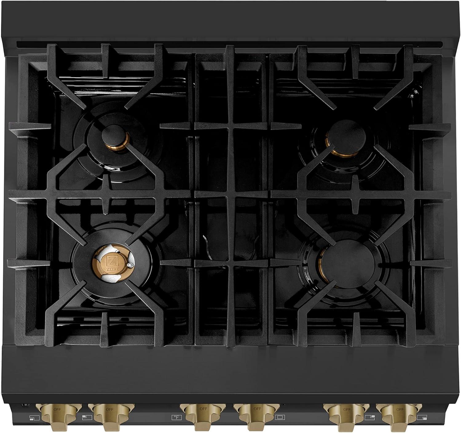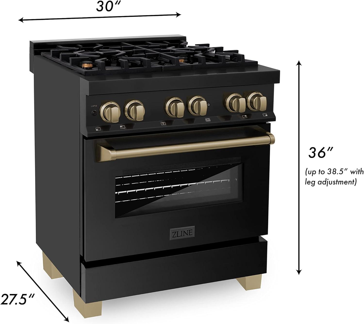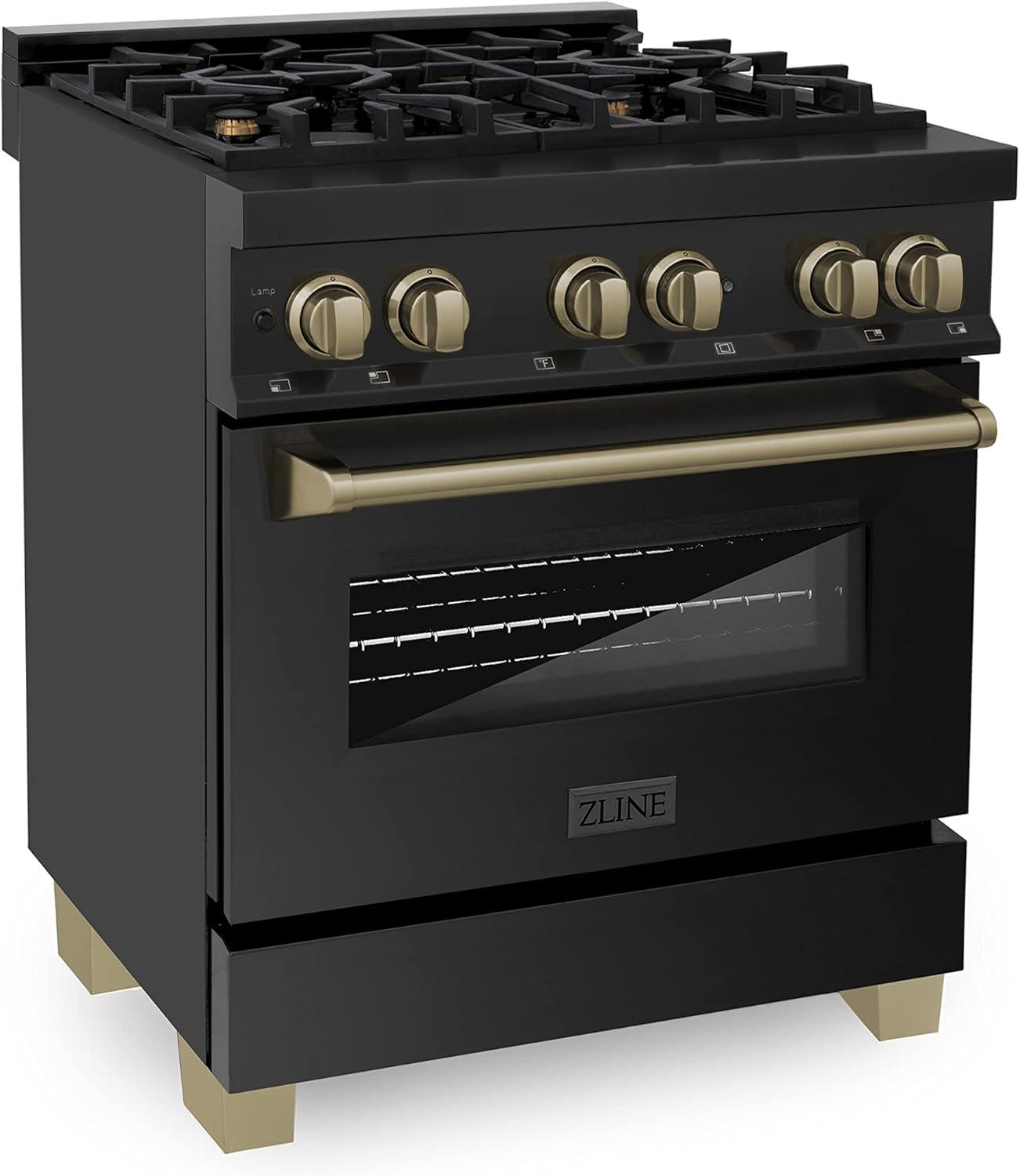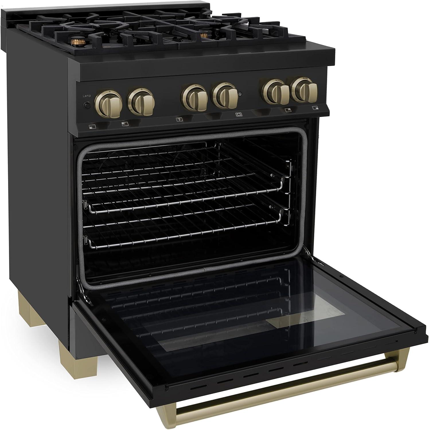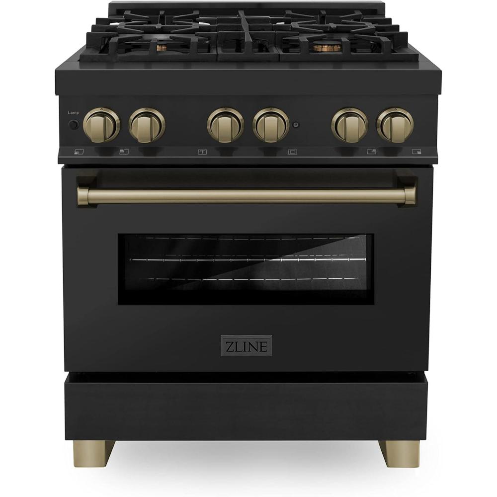 ZLINE Autograph Edition 30 in. 4.0 cu. ft. Legacy Dual Fuel Range with 4 Burner Gas Cooktop and Electric Convection Oven in Black Stainless Steel and Champagne Bronze Accents (RABZ-30-CB)