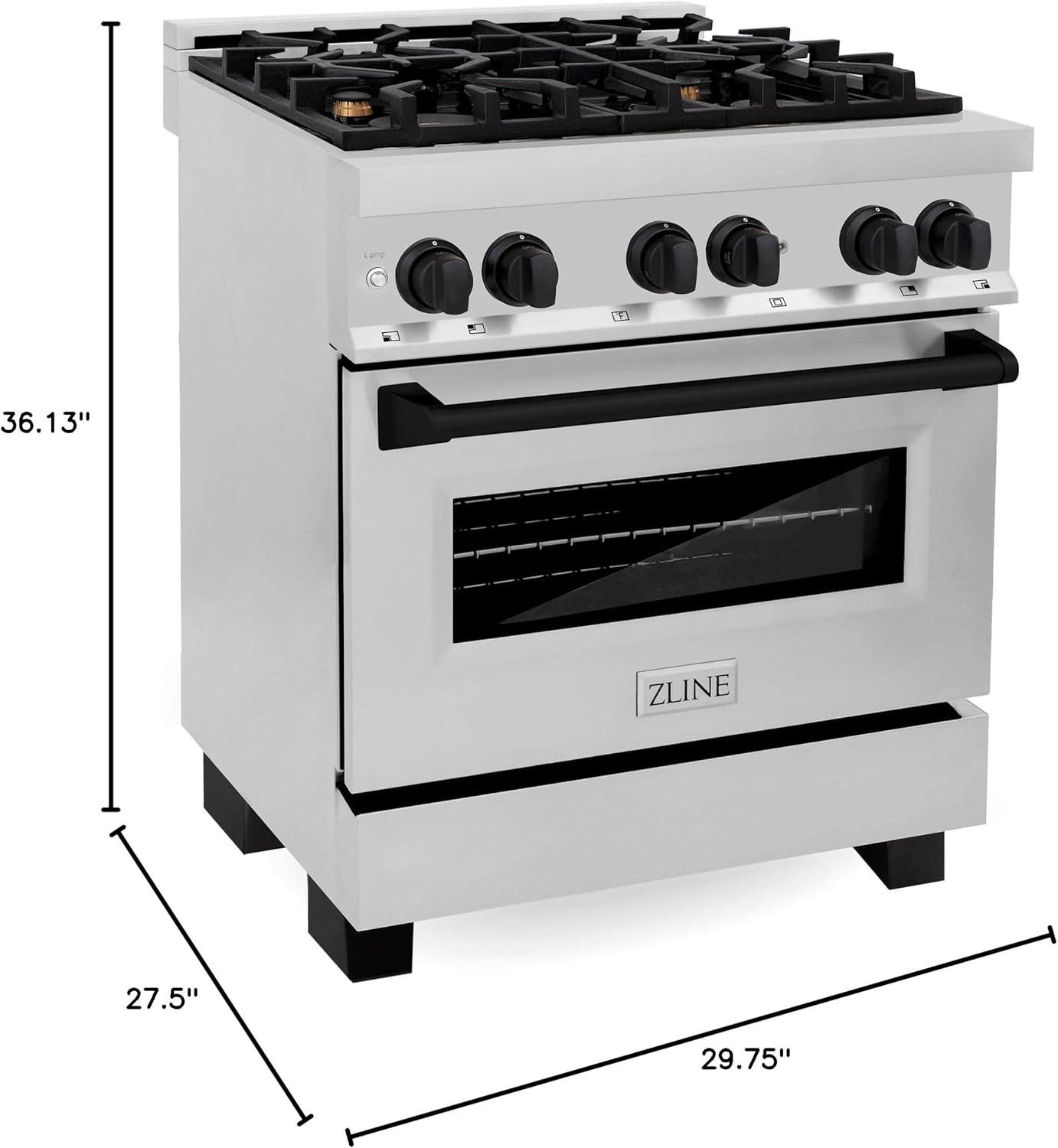 ZLINE Autograph Edition 30 in. 4.0 cu. ft. Legacy Dual Fuel Range with 4 Burner Gas Cooktop and Electric Convection Oven in Stainless Steel and Matte Black Accents (RAZ-30-MB)