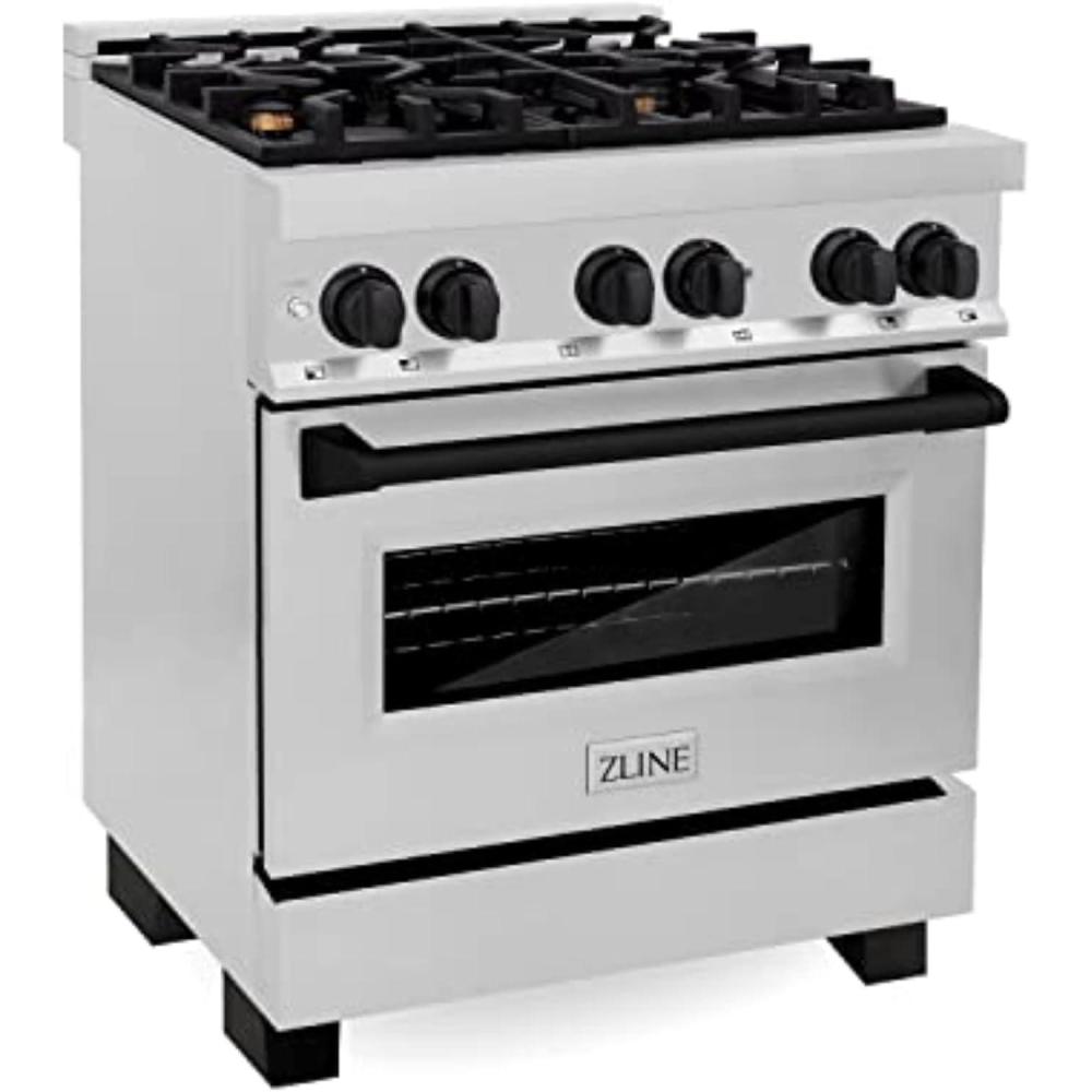 Luxury isn’t meant to be desired – it’s meant to be attainable. The ZLINE Autograph Edition 30 in. 4.0 cu. ft. Legacy Dual Fuel Range with 4 Burner Gas Cooktop and Electric Convection Oven in Stainless Steel and Matte Black Accents (RAZ-30-MB) pairs a powerful gas cooktop with 4 Italian-crafted burners, an electric convection oven with a Landscape oven door window design, and elegant matte black knobs and handle. With innovative features designed to enhance your kitchen’s capability, ZLINE Legacy Dual Fuel Ranges provide a professional culinary experience by pairing unmatched performance with timeless style.