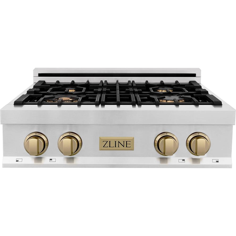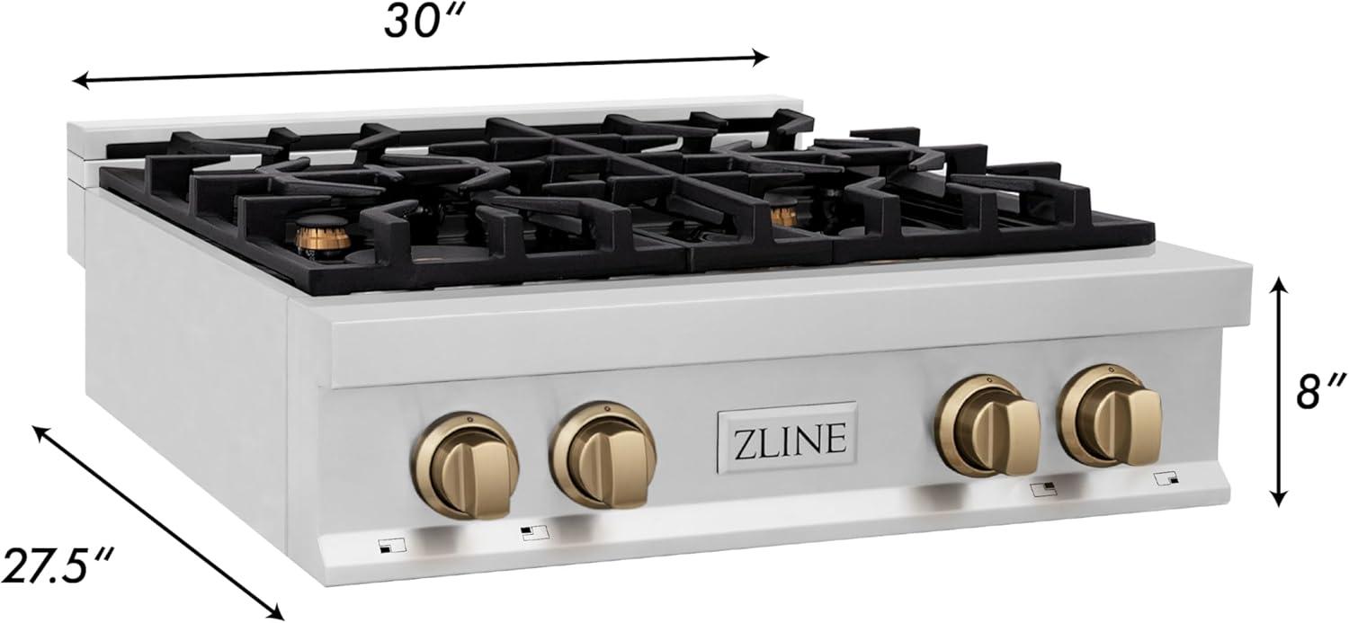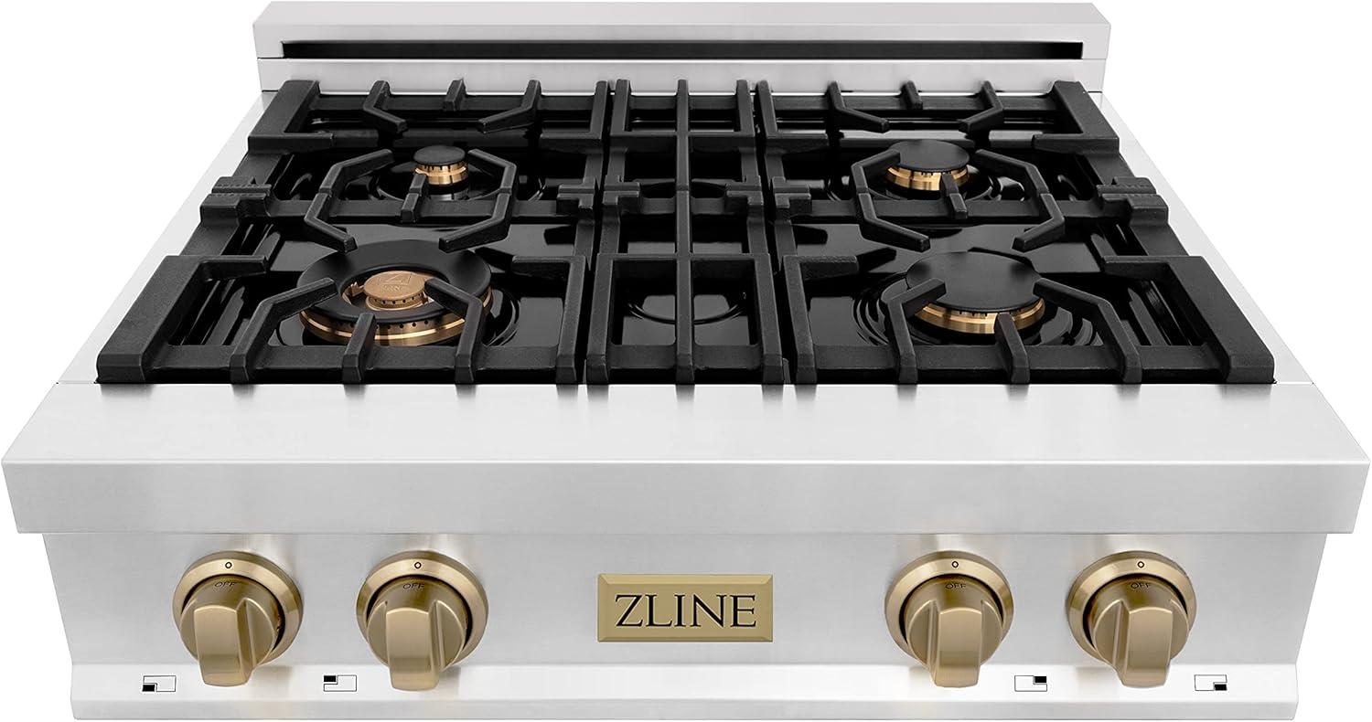 ZLINE Autograph Edition 30 in. Legacy Gas Rangetop with 4 Burners and Porcelain Cooktop in Stainless Steel with Champagne Bronze Accents (RTZ-30-CB)