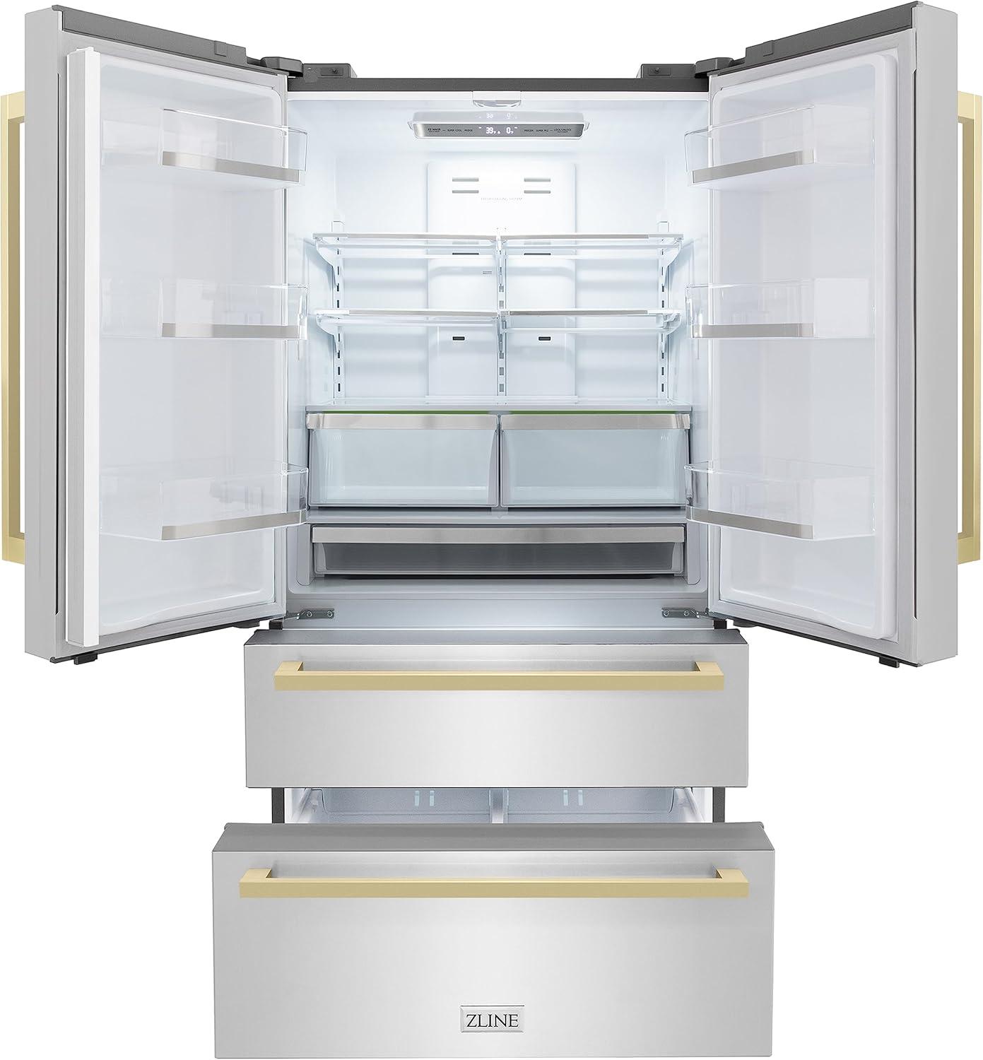 Luxury isn’t meant to be desired – it’s meant to be attainable. The ZLINE Autograph Edition 36 in. 22.5 cu. ft. Counter-Depth French Door Refrigerator with Ice Maker in Fingerprint-Resistant Stainless Steel with Champagne Bronze Modern Handles (RFMZ-36-FCB) delivers an elevated experience by pairing innovative dual cooling technology with a spacious counter-depth design and a high-capacity built-in ice maker. Achieve ZLINE Attainable Luxury excellence with timeless features designed to enhance your kitchen’s capability.