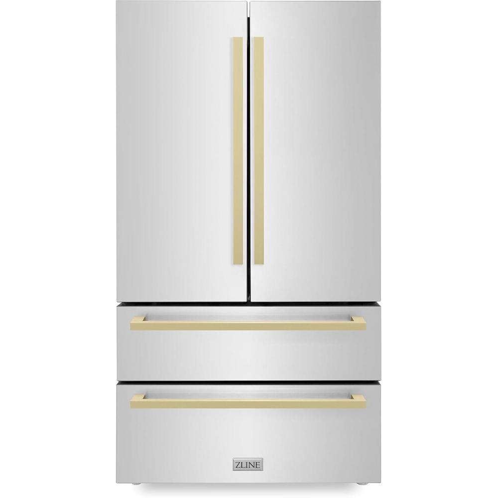 imageZLINE Autograph Edition 36 in 225 cu ft CounterDepth French Door Refrigerator with Ice Maker in FingerprintResistant Stainless Steel with Champagne Bronze Modern Handles RFMZ36FCB