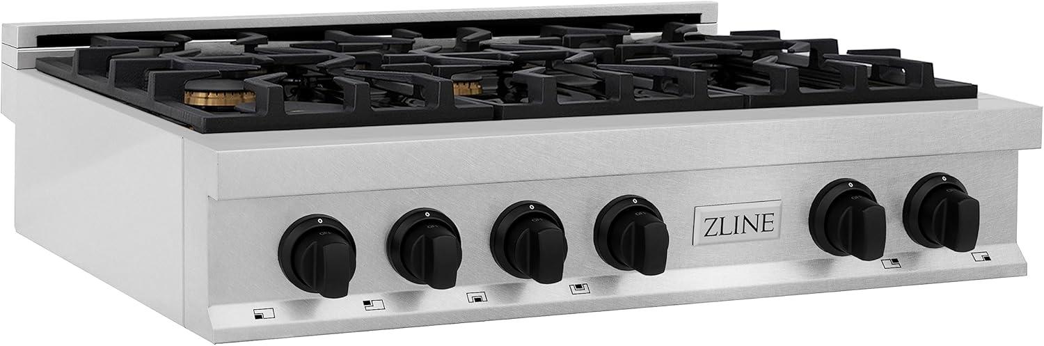 Be the first to review “ZLINE Autograph Edition 36 in. Legacy Gas Rangetop with 6 Burners and Porcelain Cooktop in Satin Stainless Steel with Matte Black Accents (RTSZ-36-MB)”