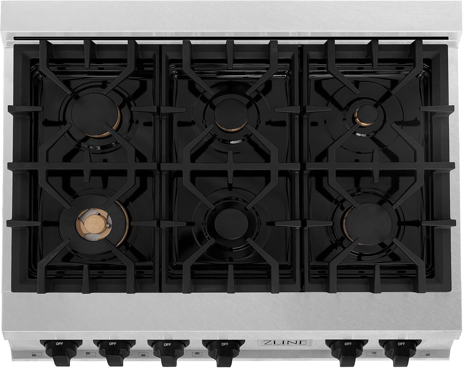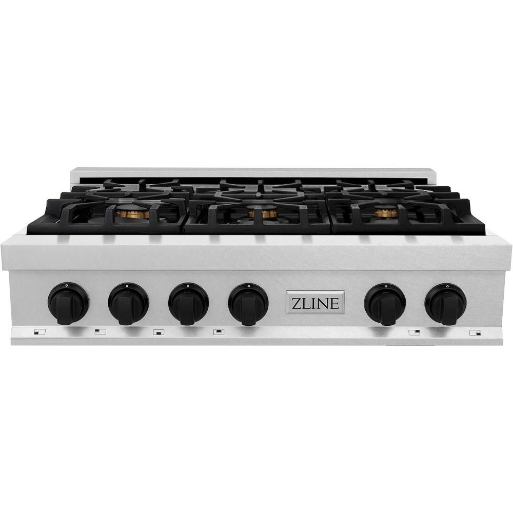 ZLINE Autograph Edition 36 in. Legacy Gas Rangetop with 6 Burners and Porcelain Cooktop in Satin Stainless Steel with Matte Black Accents (RTSZ-36-MB)