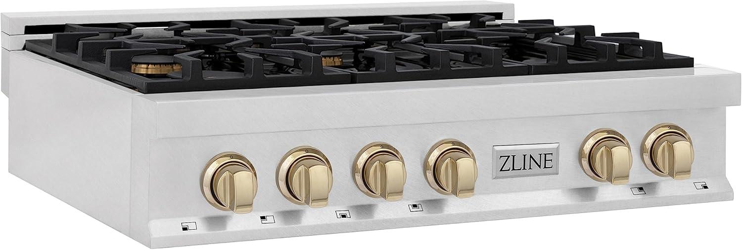 Be the first to review “ZLINE Autograph Edition 36 in. Legacy Gas Rangetop with 6 Burners and Porcelain Cooktop in Satin Stainless Steel with Polished Gold Accents (RTSZ-36-G)”