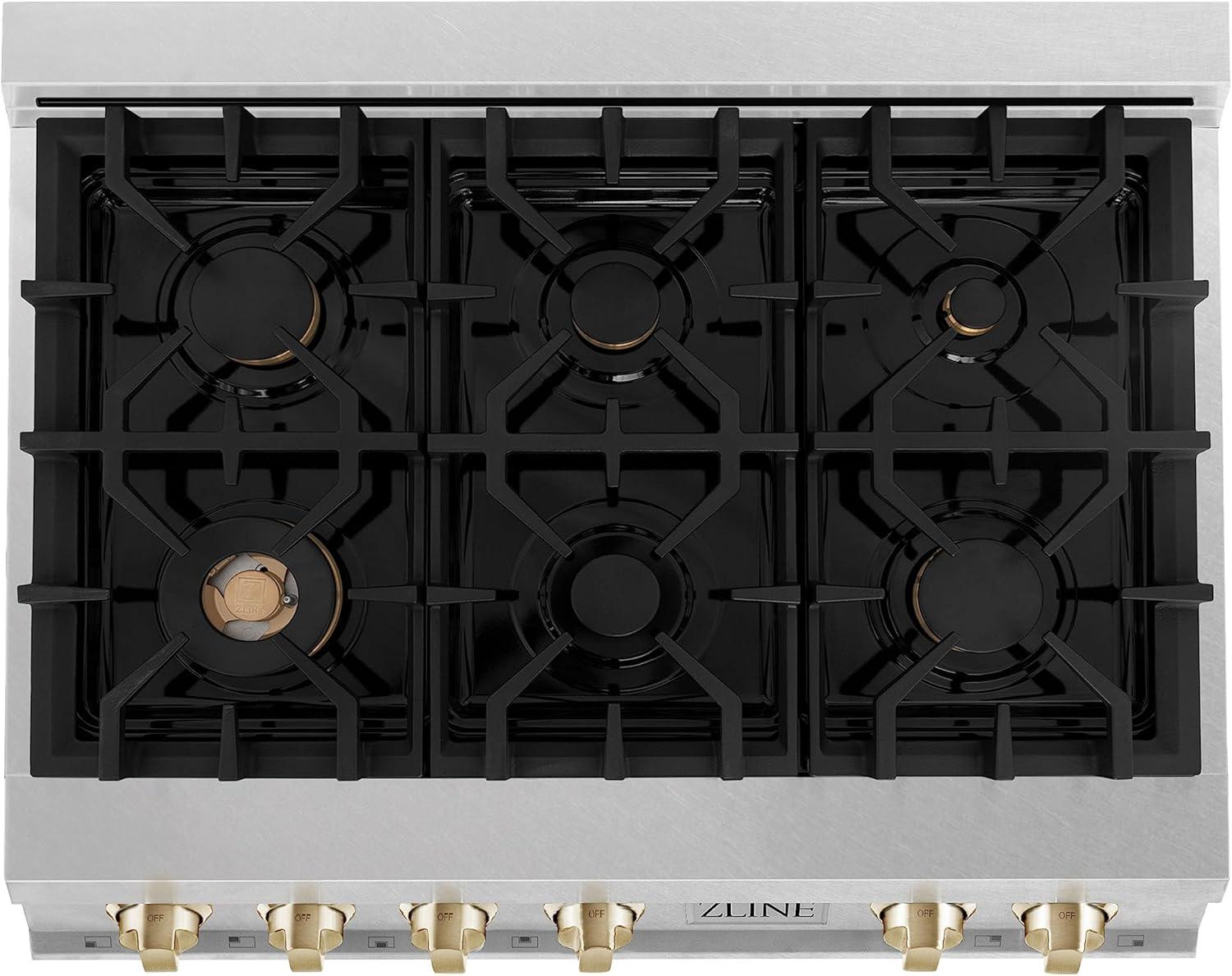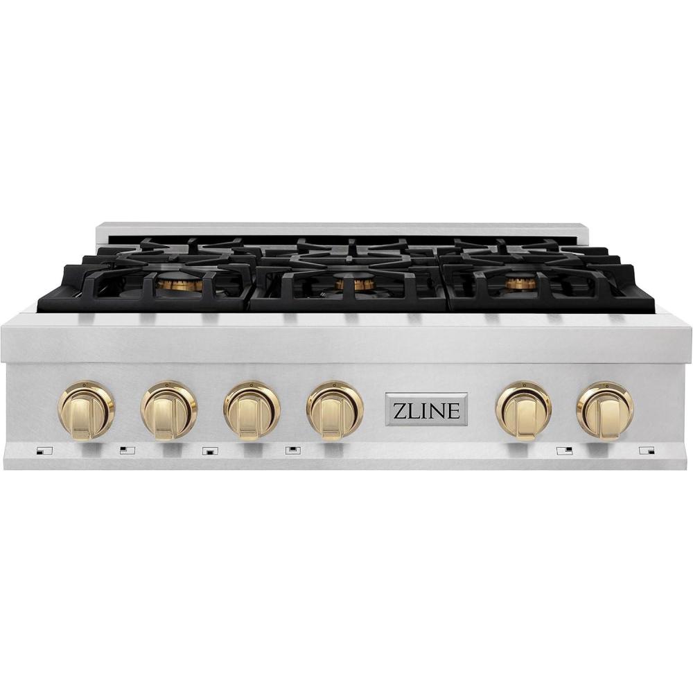 ZLINE Autograph Edition 36 in. Legacy Gas Rangetop with 6 Burners and Porcelain Cooktop in Satin Stainless Steel with Polished Gold Accents (RTSZ-36-G)