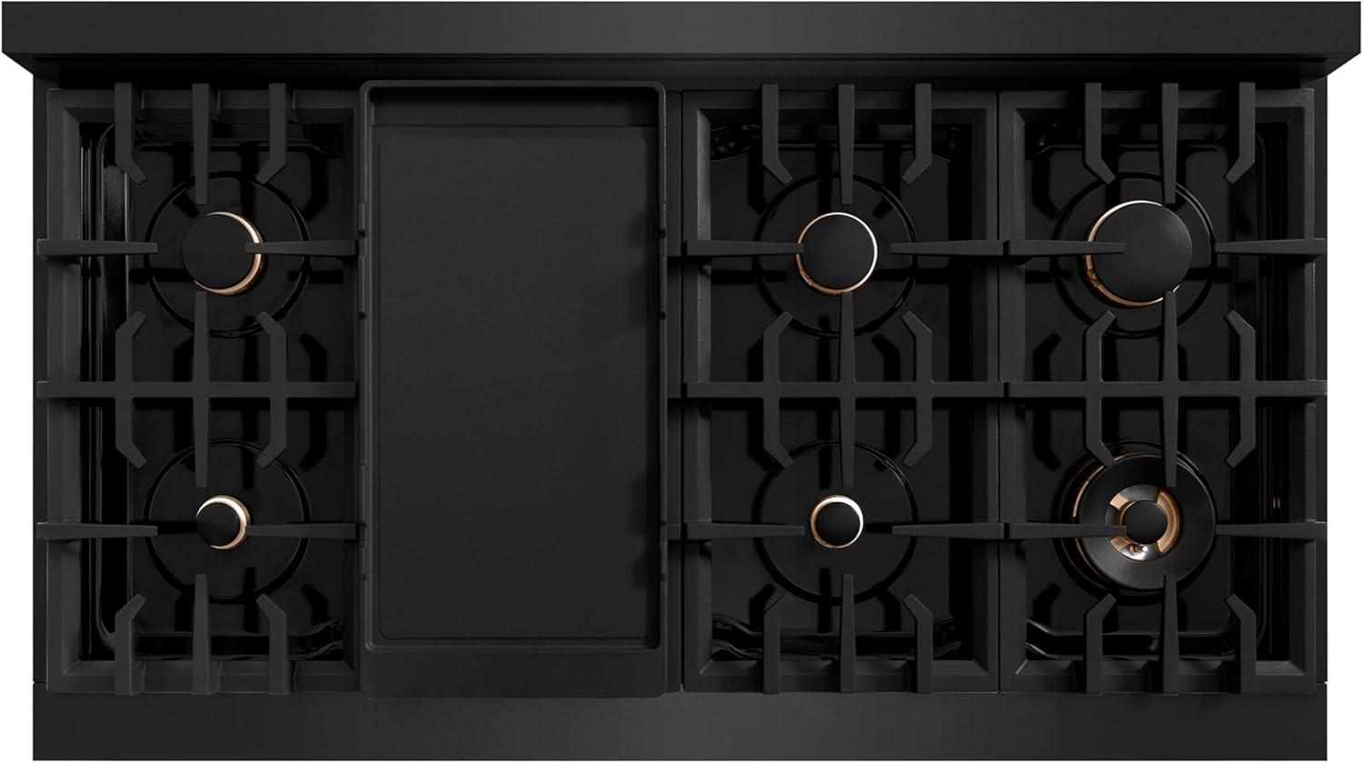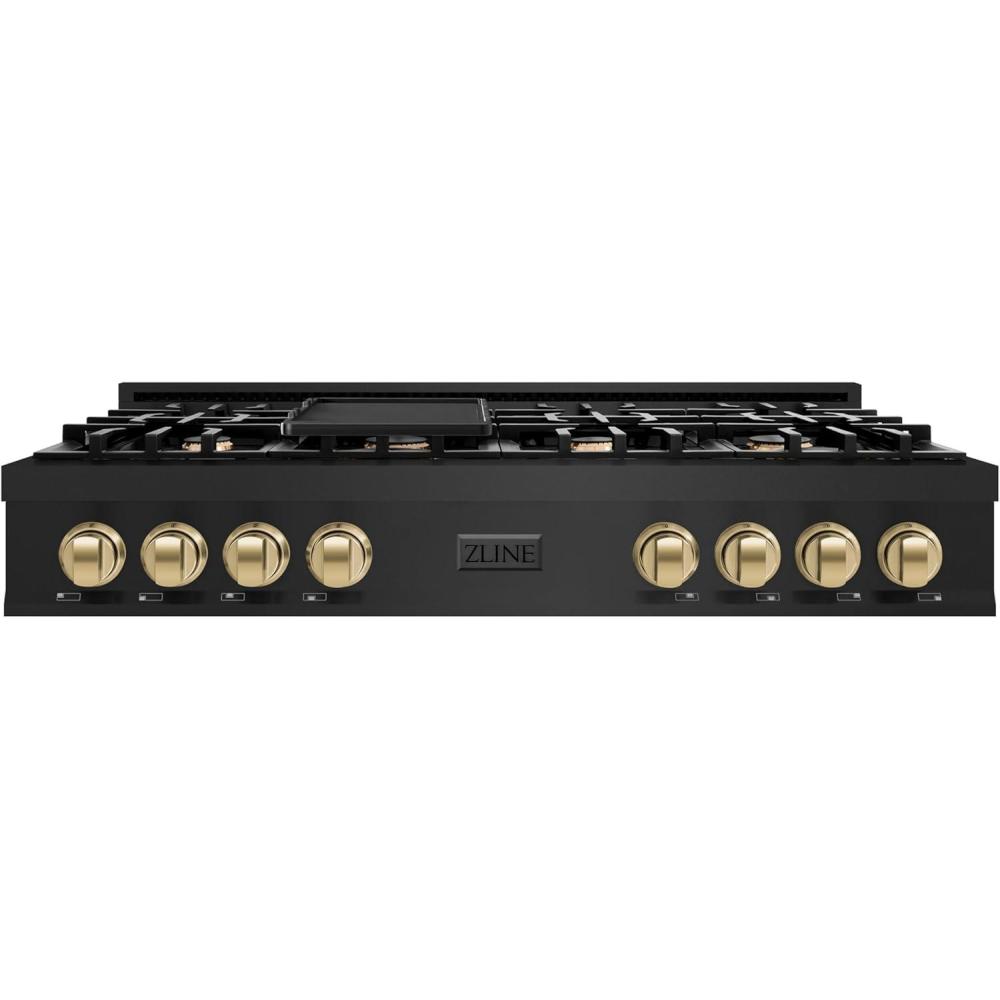 ZLINE Autograph Edition 48 in. Classic Gas Rangetop with 8 Burners and Porcelain Cooktop in Black Stainless Steel with Champagne Bronze Accents (RTBZ-48-CB)