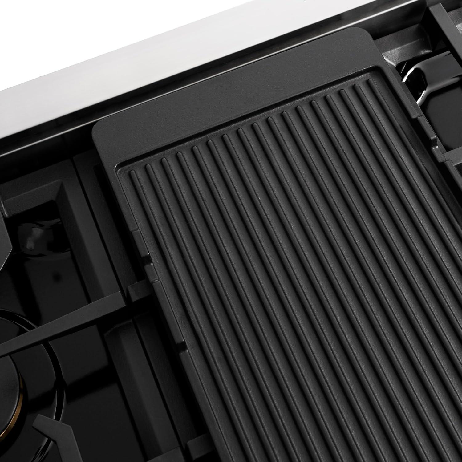 Professional Cooktop Design – Featuring a sleek cast iron grate design for a bold style and easy transferring of cookware to various burners
