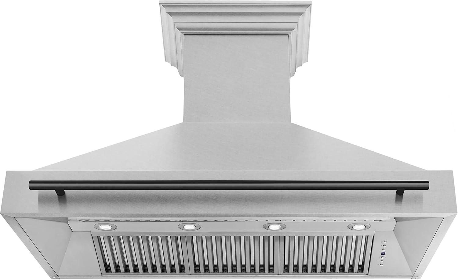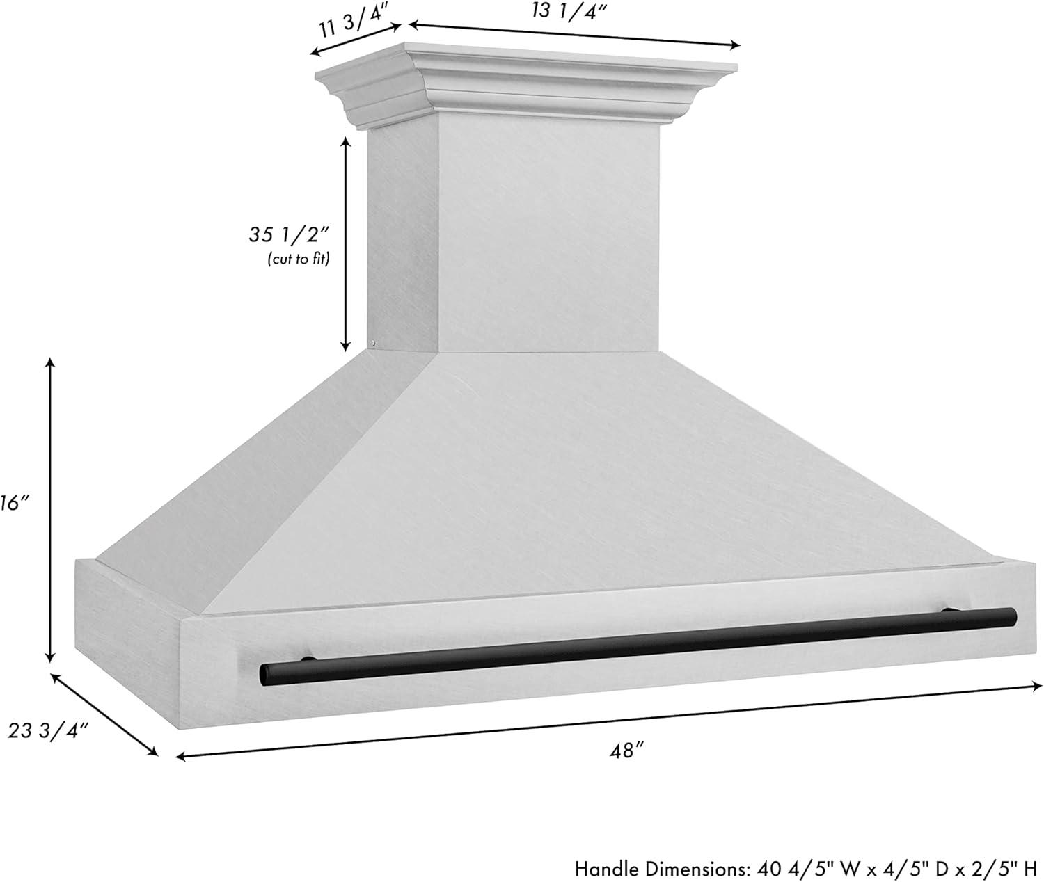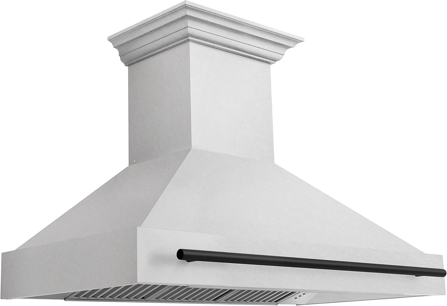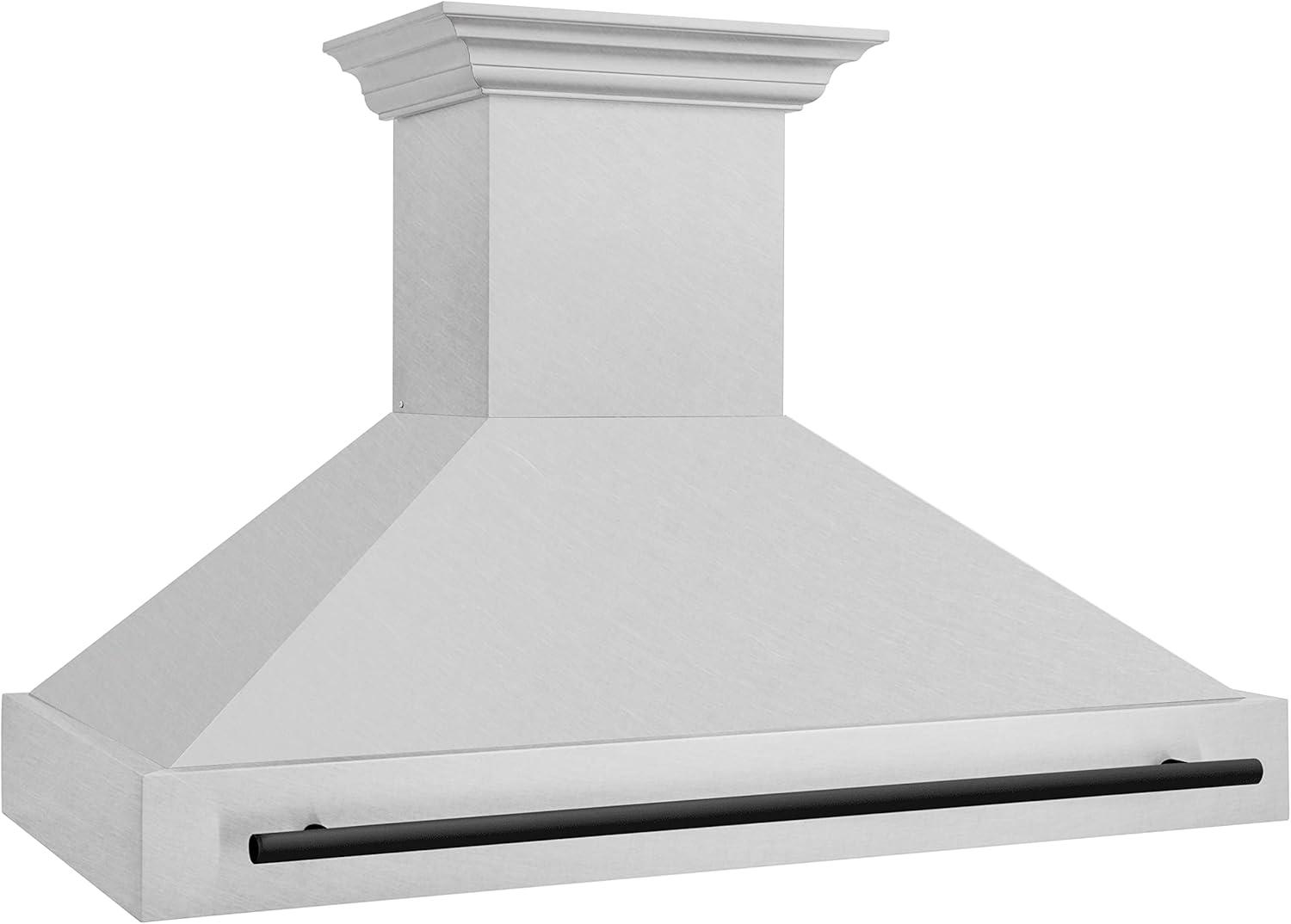 ZLINE Autograph Edition 48 in. Satin Stainless Steel Wall Mount Range Hood with Matte Black Handle (8654SNZ-48-MB)