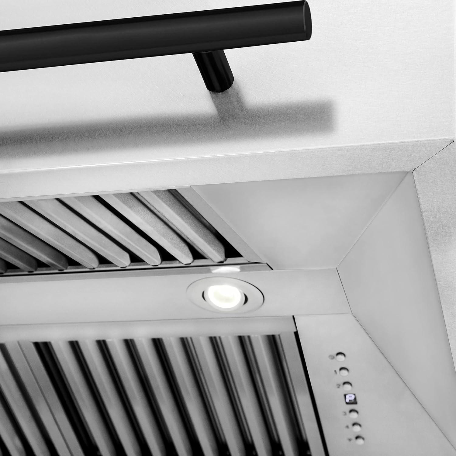 Minimal Cleaning – This range hood includes dishwasher-safe stainless steel baffle filters that are simple to clean