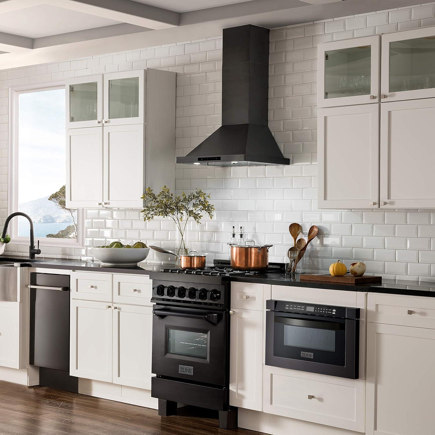 ZLINE’s black stainless steel is achieved through a technique called PVD (Physical Vapor Deposition) Coating which utilizes a vaporization process to create an atom-bonded, strong ceramic layer in order to achieve its stunning black stainless shine and built-to-last quality
