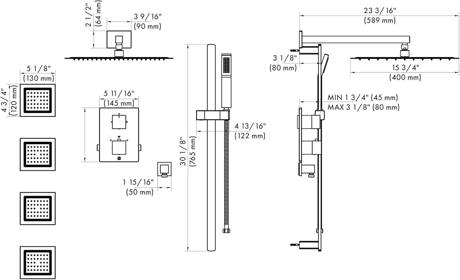 Spa-Like Body Jets – Enjoy a luxury spa-like experience from the comfort of your own bathroom with the soothing spray from four wall-mounted body jets
